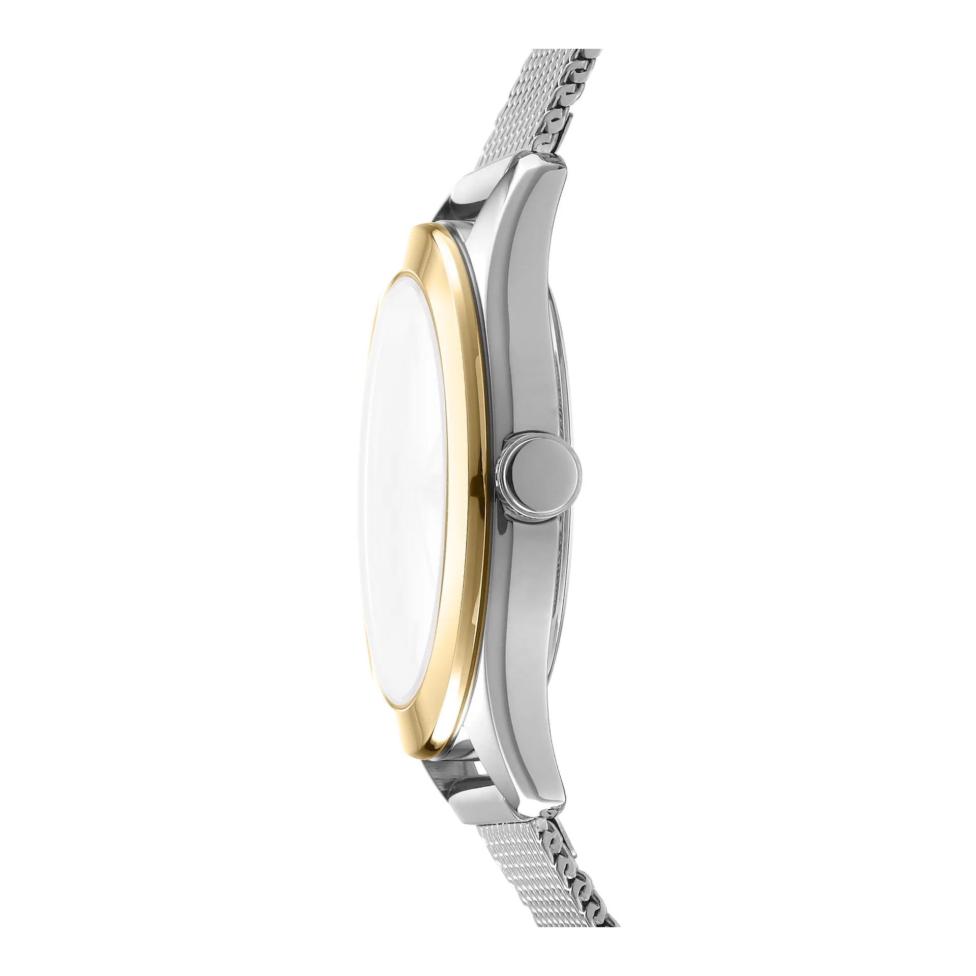 Au cœur animé de New York City, où la mode rencontre la fonctionnalité, émerge une montre qui incarne l'esprit de l'élégance moderne—la montre DKNY DK1L032 Astoria Logo. Conçue avec précision et un œil avisé pour le style, cette montre est un témoignage du design raffiné pour lequel DKNY est renommée. Son boîtier rond, baigné d'une teinte gris argent sophistiquée, mesure un gracieux 34 mm de diamètre, en faisant l'accessoire parfait pour la femme contemporaine qui valorise à la fois la forme et la fonction. Le cadran en cristal minéral offre une vue claire du cadran, qui reflète la teinte gris argent du boîtier, créant une esthétique fluide et chic. Le bracelet en acier inoxydable de la montre, également en gris argent, est non seulement durable mais dégage un look élégant et poli qui complète toute tenue. La boucle coulissante ajustable assure un ajustement parfait, ajoutant à l'attrait de la montre. Avec une résistance à l'eau allant jusqu'à 50 mètres, ce garde-temps est aussi pratique que stylé, prêt à vous accompagner dans l'agitation de la vie quotidienne. Le mouvement à quartz garantit une précision horaire, tandis que l'affichage à trois aiguilles offre une touche classique à cette merveille moderne. La montre DKNY Astoria Logo est plus qu'un simple garde-temps, c'est une déclaration de sophistication et un clin d'œil à l'énergie vibrante de la ville qui ne dort jamais.