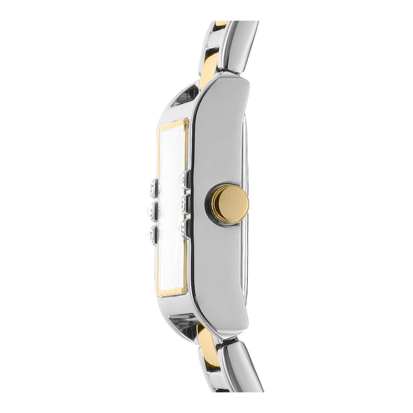 Au cœur animé de la ville, où la mode rencontre la fonctionnalité, la DKNY DK1L008 Westside Glitz émerge comme un phare d'élégance et de modernité. Confectionnée avec précision, cette montre est un témoignage du style sophistiqué de la femme contemporaine. Son boîtier rectangulaire, baigné d'un gris argenté élégant, capture l'essence du chic urbain, tandis que le cadran vert bouteille ajoute une touche de mystère et de profondeur, rappelant une forêt sereine cachée au milieu de la jungle de béton. Le bracelet en acier inoxydable, également en gris argenté, s'enroule autour du poignet avec une grâce raffinée, sécurisé par une boucle déployante papillon avec un bouton-poussoir pour plus de facilité et de confort. Le verre minéral protège le cadran, assurant clarté et durabilité, tandis que la couronne à tirer et pousser offre un réglage sans effort. Alimentée par un mouvement à quartz fiable, cette montre promet précision et fiabilité, en faisant une compagne indispensable pour la femme qui navigue dans son monde avec confiance et assurance. Résistante à l'eau, elle reste résiliente face à l'imprévu, incarnant l'esprit d'une ville qui ne dort jamais. La DKNY Westside Glitz n'est pas seulement une montre, c'est une déclaration de style, un reflet de la force intérieure et de l'élégance de celle qui la porte, parfaitement adaptée à celles qui osent allier mode et fonctionnalité dans leur vie quotidienne.