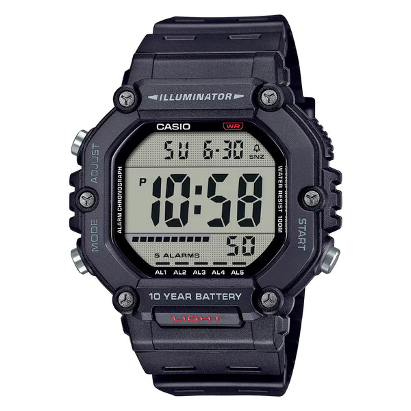 L'esprit d'innovation de Casio brille dans cette montre de sport noire légère, dotée d'un boîtier de 50 mm, d'un cadran LCD, d'un bracelet en résine et d'un mouvement à quartz fiable, avec une résistance à l'eau de 100 m pour ceux qui vivent la vie en mouvement.