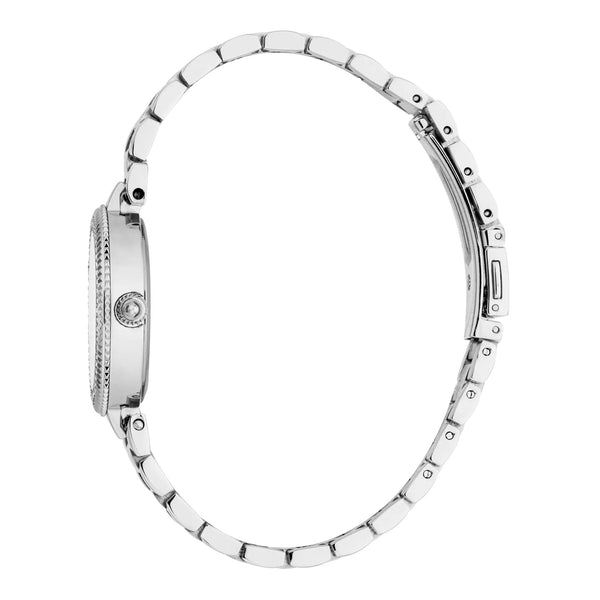Dans le domaine de la mode, où l'élégance rencontre l'audace, émerge une montre qui incarne l'essence de la sophistication et du style. Cette Just Cavalli Watch, issue de la prestigieuse collection Glam Chic, est un témoignage de l'engagement de la marque à créer des pièces à la fois intemporelles et contemporaines. Façonnée dans une forme ronde raffinée, le boîtier gris argenté dégage un charme subtil mais saisissant, complétant parfaitement le bracelet en acier inoxydable qui s'enroule autour du poignet avec grâce et assurance. La boucle déployante papillon avec bouton-poussoir assure un ajustement parfait, ajoutant une touche de commodité moderne à son design classique. Le cadran, dans un gris argenté harmonieux, est une toile d'élégance discrète, où le mouvement à quartz trois aiguilles danse avec précision et fiabilité. Avec une résistance à l'eau jusqu'à 50 mètres, cette montre n'est pas seulement une déclaration de mode mais un compagnon polyvalent pour la femme moderne. Le verre minéral ajoute une couche de durabilité, protégeant les caractéristiques délicates de la montre tout en maintenant son esthétique raffinée. Cette Just Cavalli Watch est plus qu'un accessoire, c'est une célébration de la féminité et de la mode, une pièce qui parle aux audacieuses et aux belles, capturant l'esprit de celles qui osent se démarquer dans un monde de conformité.