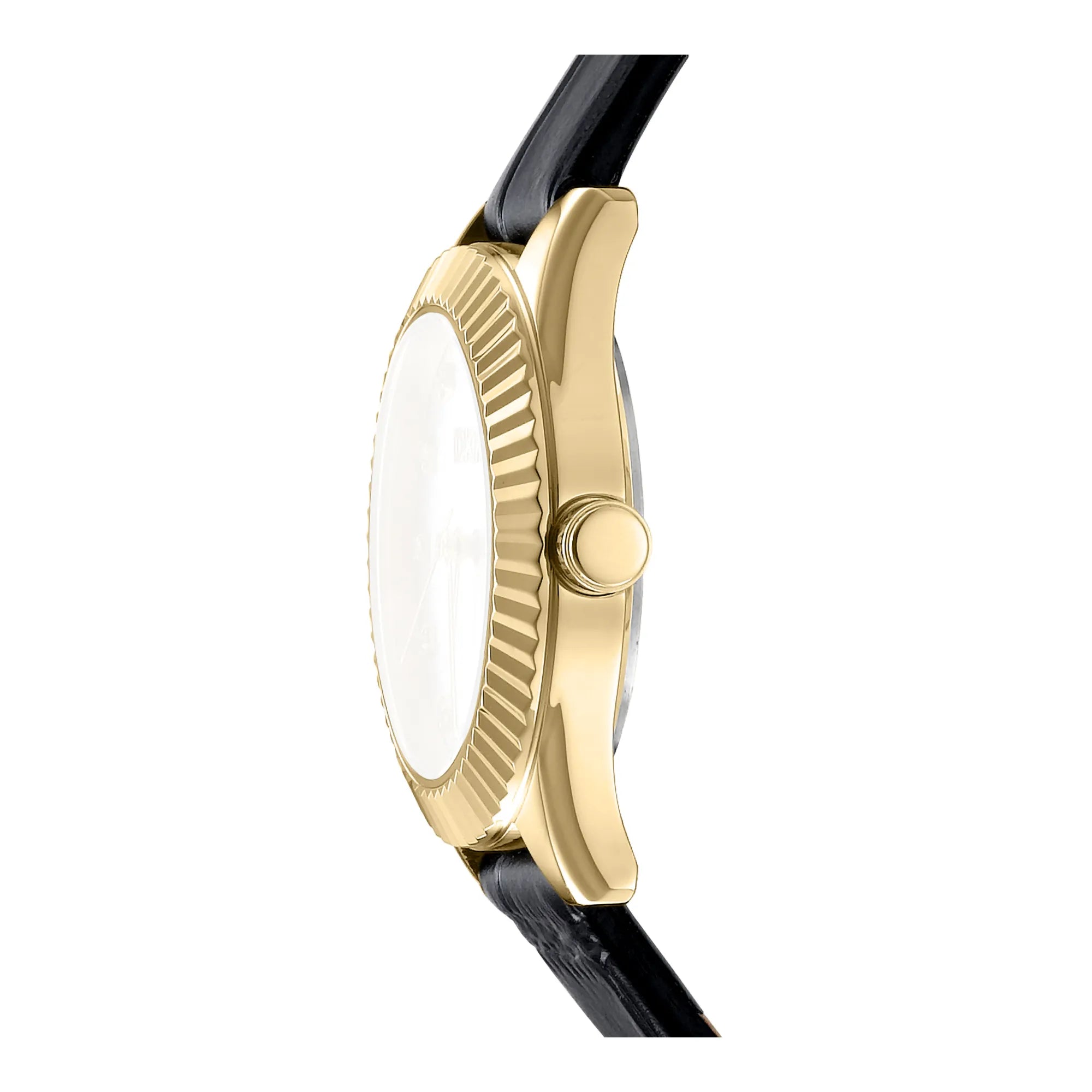 Au cœur de l'élégance urbaine, où la mode rencontre la fonctionnalité, émerge une montre qui incarne l'esprit de la sophistication moderne. Conçue dans l'univers vibrant de DKNY, la montre DK1L017 Chambers Glitz est un témoignage de l'engagement de la marque envers le style et la précision. Son boîtier rond, baigné dans la chaude lueur de l'or jaune, capture l'essence du luxe, tandis que son diamètre élégant de 30 mm assure un ajustement parfait pour la femme contemporaine. Le cadran gris argenté, une toile de glamour discret, est orné de trois aiguilles animées par un mouvement quartz précis, offrant à la fois fiabilité et grâce. Résistante à l'eau jusqu'à 50 mètres, cette montre est aussi polyvalente que belle, prête à vous accompagner des rues animées de la ville aux retraites paisibles au bord de l'eau. Le verre minéral ajoute une couche de durabilité, protégeant le cadran des rigueurs de la vie quotidienne. Un bracelet en cuir noir, sécurisé par une boucle ardillon classique, s'enroule confortablement autour du poignet, ajoutant une touche d'élégance intemporelle à toute tenue. La couronne à tirer et pousser offre une facilité de réglage, garantissant que le temps est toujours de votre côté. Cette montre DKNY est plus qu'un simple accessoire, c'est une déclaration de design raffiné et de pensée avant-gardiste, parfaite pour la femme qui sait que le vrai style ne consiste pas seulement à suivre les tendances—c'est à les créer.