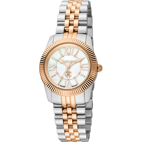 Dans le monde de la haute horlogerie, où l'élégance rencontre la précision, émerge une montre qui incarne l'essence de la sophistication et du style. Fabriquée en Suisse, cette montre Roberto Cavalli by Franck Muller est un témoignage de l'art de l'horlogerie, conçue pour la femme moderne qui apprécie à la fois la mode et la fonctionnalité. Le délicat boîtier en or rose, d'un diamètre de 28 mm, dégage une lueur chaude et luxueuse, complétant parfaitement le design raffiné du bracelet en acier inoxydable, également en or rose. Ce mélange harmonieux de matériaux crée un look sans couture à la fois intemporel et contemporain. Le cadran blanc antique, une toile d'élégance discrète, est protégé par un verre saphir, garantissant clarté et durabilité. Avec une résistance à l'eau allant jusqu'à 50 mètres, cette montre est aussi pratique que belle, prête à vous accompagner dans les aventures de la vie. La couronne à tirer et pousser offre une facilité d'utilisation, tandis que le mouvement à quartz, alimenté par le précis Calibre 763, garantit une mesure du temps exacte. Cette montre à affichage analogique n'est pas seulement un accessoire, c'est une déclaration de grâce et d'assurance, un reflet du goût impeccable de celle qui la porte. Qu'elle soit portée lors d'un gala ou d'un brunch décontracté, cette montre exquise est sûre d'attirer les regards et de susciter des conversations, en faisant un ajout essentiel à la collection de toute femme exigeante.