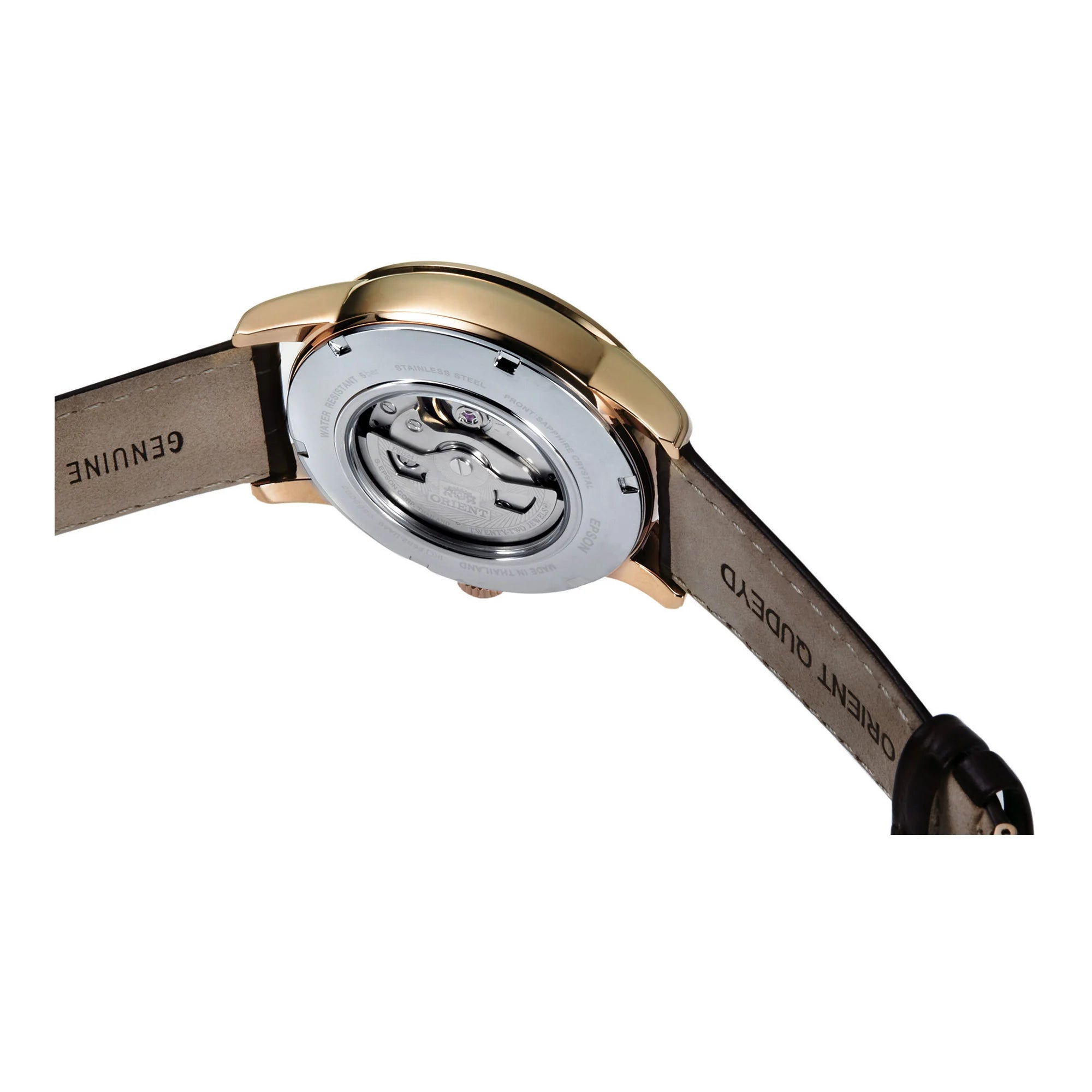 Dans le domaine de l'horlogerie, où l'élégance rencontre la précision, la montre ORIENT Classic AK00 Sun & Moon se dresse comme un témoignage de sophistication intemporelle. Conçue avec une attention méticuleuse aux détails, cette pièce d'exception capture l'essence du style classique avec une touche moderne. Le boîtier rond, baigné d'une teinte luxueuse or rose, dégage une aura d'opulence raffinée, complétant parfaitement le cadran couleur champagne chaleureux. Ce mélange harmonieux de couleurs est sublimé par le bracelet en cuir marron chocolat riche, qui enveloppe le poignet avec une élégance discrète. La boucle déployante à poussoir assure un ajustement sûr et confortable, en faisant un compagnon idéal pour toutes les occasions. Sous son verre saphir se cache un univers de merveilles mécaniques, animé par le calibre F6B24 avec 22 rubis, offrant des options de remontage manuel et automatique. Le fond transparent révèle la danse complexe des engrenages et des ressorts, un spectacle fascinant pour l'œil averti. Avec une étanchéité jusqu'à 50 mètres, cette montre est aussi pratique que belle. Le calendrier jour et date, affiché avec précision, ajoute une touche de fonctionnalité à son design classique. La montre ORIENT Classic AK00 Sun & Moon n'est pas seulement un garde-temps, c'est une déclaration de sophistication, une célébration du savoir-faire et un hommage à l'attrait durable de l'élégance classique.