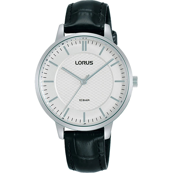 Im Reich zeitloser Eleganz, wo Raffinesse auf Funktionalität trifft, entsteht ein Meisterwerk horologischer Kunst. Mit Präzision und Anmut gefertigt, ist diese Lorus Lady Uhr ein Zeugnis der beständigen Anziehungskraft klassischen Designs. Ihr rundes Gehäuse, getaucht in ein glänzendes Silbergrau, fängt das Licht mit einem subtilen Schimmer ein, während der Durchmesser von 34 mm ein perfektes Gleichgewicht zwischen Präsenz und Zartheit bietet. Entworfen für die moderne Frau, die sowohl Stil als auch Substanz schätzt, verfügt diese Uhr über eine Wasserdichtigkeit von bis zu 100 Metern, was sie zu einer verlässlichen Begleiterin durch die Abenteuer des Lebens macht. Das Mineralglas bietet ein klares Fenster zur Welt der Zeit, geschützt durch eine Pull & Push Krone, die ihr raffiniertes Design unterstreicht. Das Handgelenk umschließend mit einem Hauch von Luxus, bietet das schwarze Lederarmband, gesichert durch eine Dornschließe, einen bequemen und sicheren Sitz. Das hellgraue Zifferblatt, eine Leinwand zurückhaltender Schönheit, wird von einem präzisen Quarzwerk angetrieben, das sicherstellt, dass jeder Moment genau erfasst wird. Diese analoge Anzeige, eine Hommage an die Tradition, erinnert daran, dass wahre Eleganz niemals aus der Mode kommt. Mit seiner harmonischen Verbindung von Form und Funktion ist diese Lorus Lady Uhr nicht nur ein Zeitmesser, sondern ein Ausdruck von Anmut und Haltung, bestimmt, von denen geschätzt zu werden, die sie tragen.