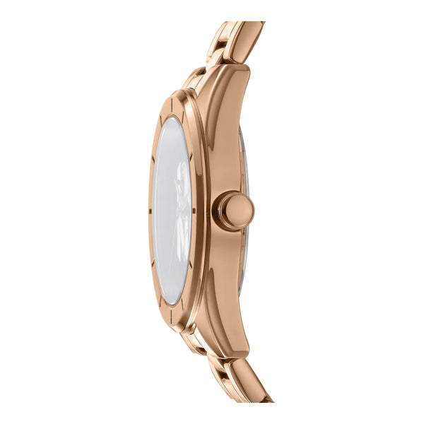 Die DKNY Chambers Midi in Roségold ist ein Meisterwerk der Eleganz. Ihr rundes Gehäuse und das nachtblau Zifferblatt schaffen einen auffälligen Kontrast, während das Edelstahlarmband einen Hauch von Raffinesse hinzufügt. Mit WR 50mt Wasserdichtigkeit ist sie perfekt für jeden Anlass.
