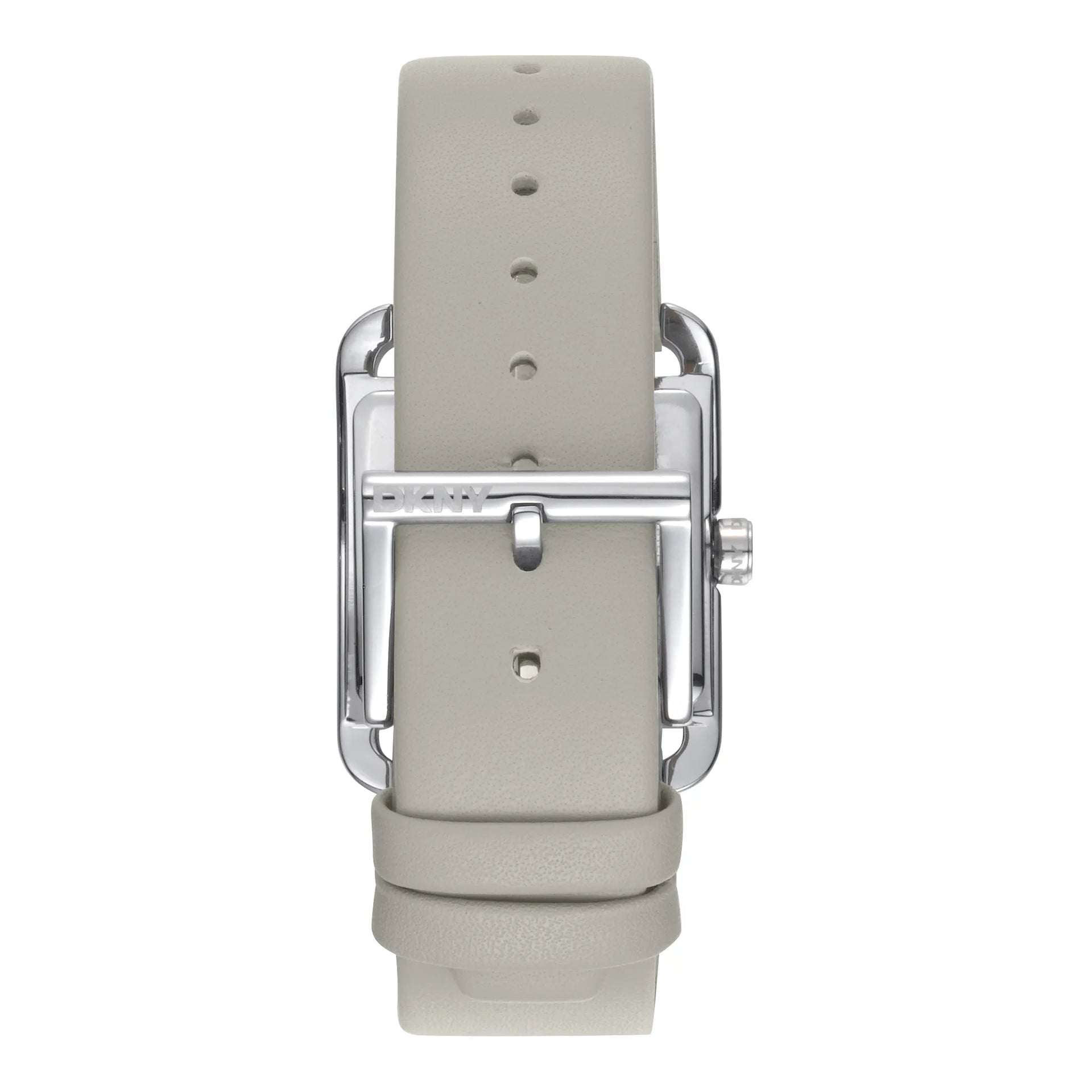 Die DKNY City Maxi ist eine Feier der urbanen Eleganz, mit einem 29mm rechteckigen silbergrauen Gehäuse und passendem Lederarmband. Ihr minimalistisches Design und die Wasserbeständigkeit machen sie zu einer modischen Wahl für die moderne Frau. Ein silbergraues Zifferblatt vervollständigt dieses anspruchsvolle Ensemble.