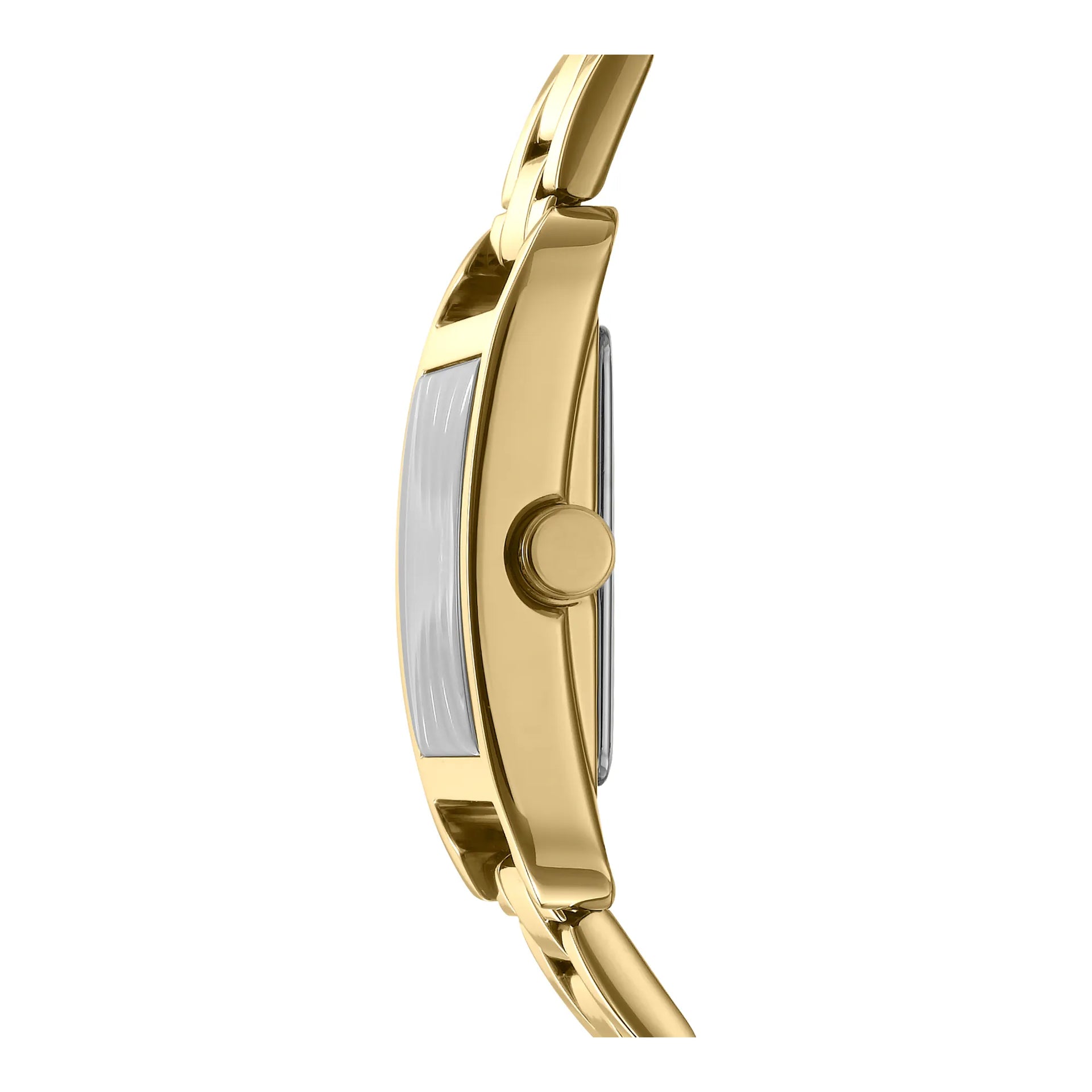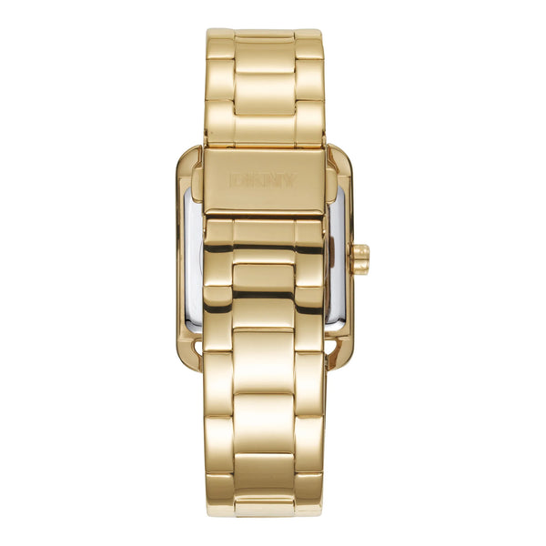 Im pulsierenden Herzen der Stadt, wo Mode auf Funktion trifft, entsteht eine Uhr, die das Wesen urbaner Eleganz verkörpert. Die DKNY City Maxi Uhr ist ein Zeugnis für den dynamischen Lebensstil der modernen Frau und verbindet nahtlos Raffinesse mit Praktikabilität. Ihr rechteckiges Gehäuse, getaucht in einen luxuriösen Gelbgoldton, fängt das Licht bei jeder Bewegung ein und macht sie zu einem auffälligen Accessoire für jeden Anlass. Der 29-mm-Gehäusedurchmesser bietet eine perfekte Balance zwischen Kühnheit und Zurückhaltung und sorgt dafür, dass sie auffällt, ohne zu überwältigen. Präzise gefertigt, ist diese Uhr wasserbeständig und bietet Sicherheit bei unerwarteten Spritzern des Stadtlebens. Das Mineralglas schützt das silbergraue Zifferblatt, auf dem drei Zeiger anmutig tanzen, angetrieben von einem zuverlässigen Quarzwerk. Die Pull-&-Push-Krone verleiht einen Hauch klassischen Charmes, während das Edelstahlarmband, ebenfalls in Gelbgold, das Handgelenk mit einem raffinierten Design umschließt. Die Butterfly-Faltschließe mit Druckknopf sorgt für einen sicheren Sitz und ermöglicht es der Trägerin, ihren Tag mit Selbstvertrauen und Leichtigkeit zu meistern. Diese DKNY Uhr ist nicht nur ein Zeitmesser, sondern ein Stil-Statement, ein Spiegelbild der lebendigen Stadtszenerie und eine Feier der Reise der modernen Frau durchs Leben.