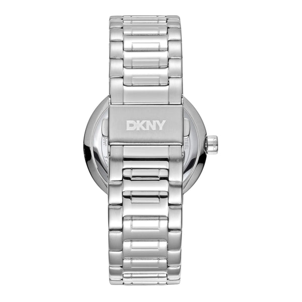 Erleben Sie die raffinierte Eleganz der DKNY Eastside Logo Uhr. Ihr silbergraues Gehäuse und das antikweiße Zifferblatt werden durch ein Edelstahlarmband ergänzt, das eine zeitlose Ästhetik schafft. Wasserdicht bis 50 Meter, ist sie ein anspruchsvolles Accessoire für jeden Anlass.
