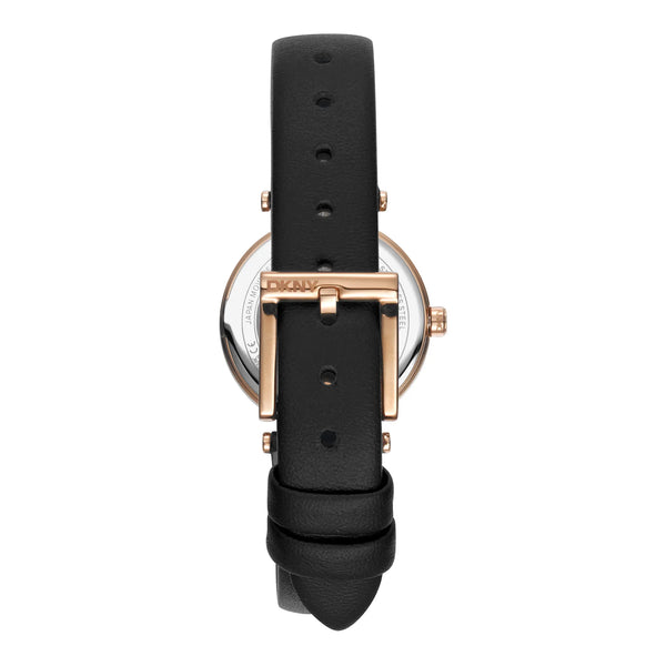 Im pulsierenden Herzen von New York City, wo Mode auf Funktion trifft, entsteht eine Uhr, die das Wesen urbaner Eleganz verkörpert. Gefertigt im Geist moderner Raffinesse, ist diese DKNY Essential Mini Uhr ein Zeugnis für das Engagement der Marke für Stil und Präzision. Das runde Gehäuse, getaucht in einen luxuriösen Roségoldton, fängt das Licht bei jeder Bewegung ein und schafft einen fesselnden Tanz der Reflexionen. Mit einem zarten Durchmesser von 28 mm sitzt sie anmutig am Handgelenk, ein perfekter Begleiter für die zeitgenössische Frau, die sowohl Form als auch Funktion schätzt. Das schwarze Lederarmband, schlank und geschmeidig, schmiegt sich bequem um das Handgelenk und wird von einer klassischen Dornschließe gesichert, die für zeitloses Design steht. Unter dem Mineralglas dient das schwarze Zifferblatt als Leinwand für die Drei-Zeiger-Anzeige, angetrieben vom zuverlässigen Quarzwerk, das Pünktlichkeit in jedem Moment gewährleistet. Mit einer Wasserdichtigkeit von bis zu 50 Metern ist diese Uhr ebenso vielseitig wie stilvoll und bereit, Sie vom Konferenzraum bis zu einem Abend in der Stadt zu begleiten. Die Pull & Push-Krone fügt einen Hauch von Praktikabilität hinzu und ermöglicht einfache Anpassungen, während das raffinierte Design der Uhr erhalten bleibt. Diese DKNY Uhr ist nicht nur ein Accessoire, sondern ein Statement für zukunftsorientiertes Denken in der Mode, ein Stück, das mit der lebendigen Energie der Stadt, die niemals schläft, mitschwingt.