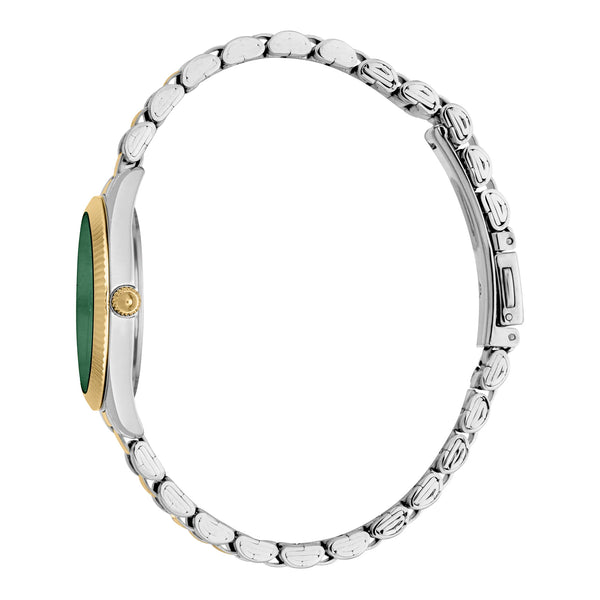 In der Welt der Mode, wo Eleganz auf Kühnheit trifft, entsteht eine Uhr, die das Wesen von Raffinesse und Mut einfängt. Gefertigt im Herzen des Stils, ist diese Just Cavalli Uhr aus der JC1L267 Pacentro Kollektion ein Zeugnis für verfeinertes Design und exquisiten Geschmack. Ihr rundes Gehäuse, getaucht in den luxuriösen Farbton von Gelbgold, strahlt eine zeitlose Anziehungskraft aus und ergänzt perfekt das Edelstahlarmband, das denselben goldenen Glanz widerspiegelt. Die Schmetterlings-Faltschließe mit Druckknopf sorgt für einen nahtlosen Sitz und verbindet Funktionalität mit Eleganz. Im Herzen dieses Meisterwerks liegt ein flaschengrünes Zifferblatt, ein ruhiger Hintergrund, der die Präzision seines Drei-Zeiger-Quarzwerks hervorhebt. Mit einem Gehäusedurchmesser von 30 mm ist diese Uhr für die moderne Frau entworfen, die sowohl Mode als auch Funktion schätzt. Bis zu 50 Meter wasserdicht, verspricht sie Zuverlässigkeit, ohne auf Stil zu verzichten. Das Mineralglas fügt eine Schicht Haltbarkeit hinzu, während die Pull & Push Krone die Bedienung erleichtert. Diese Just Cavalli Uhr ist nicht nur ein Accessoire, sondern ein Ausdruck von Charakter und Anmut, ein perfekter Begleiter für diejenigen, die es wagen, in der Menge aufzufallen.