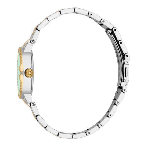 Uhr, gefertigt in einem raffinierten Design für die moderne Frau, diese elegante Armbanduhr wiegt 74 g und präsentiert ein rundes silbergraues Stahlgehäuse, das ein tiefes flaschengrünes Zifferblatt mit zurückhaltenden Indizes und polierten Zeigern umrahmt. Das Glas ist mineralisch, bietet klare Sicht und Alltagstauglichkeit, während die Krone ein praktischer Zieh- und Drücktyp für einfaches Einstellen der Zeit ist. Wasserdichtigkeit bis 50 Meter schützt vor kurzem Eintauchen und alltäglichem Wasserkontakt, und das Edelstahlarmband schließt mit einer Faltschließe mit Druckknopf für sicheren, bequemen Sitz. Schlank und raffiniert verbindet die Uhr feminine Proportionen mit langlebigen Materialien und ist ein vielseitiger Begleiter von Terminen am Tag bis zu Abendveranstaltungen, verkörpert feinen Geschmack und zuverlässige Funktion ohne Übermaß.