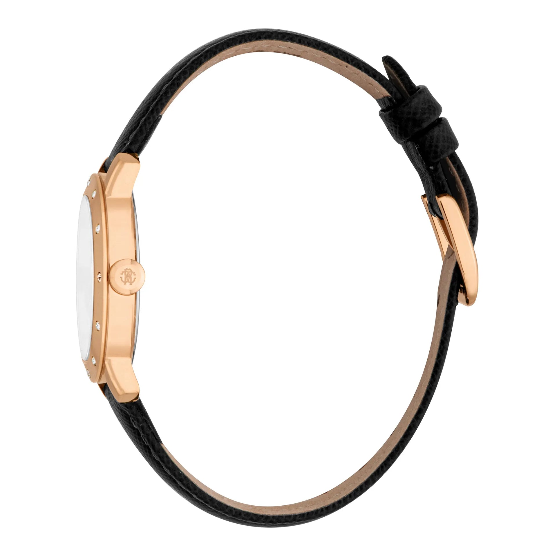 In der Welt der Mode, in der Eleganz auf Innovation trifft, entsteht eine Uhr, die das Wesen von Raffinesse und Stil einfängt. Gefertigt im Herzen der Schweizer Uhrmacherkunst, ist diese Roberto Cavalli Lady Uhr ein Zeugnis für verfeinertes Design und exquisite Handwerkskunst. Das runde Gehäuse, getaucht in einen luxuriösen Roségoldton, strahlt ein warmes Leuchten aus, das das zarte Handgelenk der modernen Frau ergänzt. Mit einem Gehäusedurchmesser von 30 mm findet sie die perfekte Balance zwischen Zurückhaltung und Präsenz und ist somit ein ideales Accessoire für jeden Anlass. Das Mineralglas schützt ein silbergraues Zifferblatt, auf dem drei Zeiger anmutig tanzen, angetrieben von der Präzision eines Quarzwerks mit GL32 Kaliber. Die Pull & Push Krone fügt einen Hauch von Praktikabilität hinzu und sorgt für einfache Handhabung. Das Handgelenk umschließt ein elegantes schwarzes Lederband, gesichert mit einer Dornschließe, das sowohl Komfort als auch Stil bietet. Mit einer Wasserdichtigkeit von bis zu 50 Metern ist diese Uhr so vielseitig wie schön und bereit, Sie vom Konferenzraum bis zum Abendessen zu begleiten. Die Roberto Cavalli Lady Uhr ist mehr als nur eine Uhr, sie ist ein Statement für modebewusstes Denken und zeitlose Eleganz, entworfen für die Frau, die ihren Wert kennt und keine Angst hat, ihn zu zeigen.