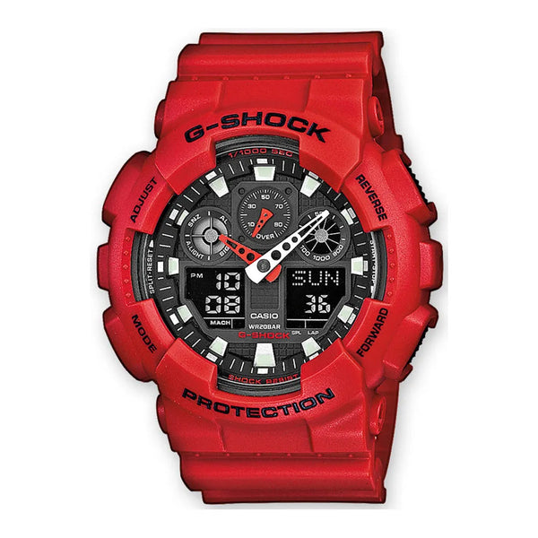 Im Bereich der Zeitmessung, wo Präzision auf Abenteuer trifft, entsteht ein Meisterwerk, das das Gewöhnliche herausfordert. Für den modernen Entdecker gefertigt, ist diese Casio G-Shock Uhr ein Zeugnis des Geistes von Widerstandsfähigkeit und Stil. Ihr mutiges, rundes Gehäuse, getaucht in ein auffälliges rotes Farbton, zieht Aufmerksamkeit auf sich und spricht die wagemutige Seele an, die sie trägt. Mit einem beeindruckenden Durchmesser von 51 mm ist sie nicht nur eine Uhr, sondern ein Statement der Kühnheit. Für den abenteuerlustigen Mann entworfen, ist ihr raffiniertes Design gebaut, um den Tiefen standzuhalten, mit einer Taucher-Wasserbeständigkeit von bis zu 200 Metern. Das Mineralglas schützt das Zifferblatt und sorgt für Klarheit und Haltbarkeit, während die Pull & Push-Krone nahtlose Funktionalität bietet. Das rote Harzarmband, gesichert mit einer Dornschließe, ergänzt das Gehäuse und schafft eine harmonische Verbindung von Form und Funktion. Das schwarze Zifferblatt, eine Leinwand der Raffinesse, beherbergt ein analog-digitales Display, das von einem präzisen Quarzwerk angetrieben wird. Mit einem Kaliber von 5081 bietet es einen umfassenden Kalender mit Tag, Datum und Monat, der sicherstellt, dass Sie immer mit der Zeit synchron sind. Die Chronograph-, Alarm-, Timer- und Lichtfunktionen sind griffbereit und begleiten Sie auf jedem Abenteuer. Diese Uhr ist nicht nur ein Accessoire, sie ist ein Begleiter für diejenigen, die es wagen, Grenzen zu überschreiten und den Nervenkitzel des Unbekannten zu umarmen.
