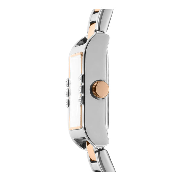 Im Herzen urbaner Eleganz, wo die Lichter der Stadt mit den Sternen tanzen, entsteht eine Uhr, die das Wesen moderner Raffinesse einfängt. Die DKNY DK1L008 Westside Glitz ist ein Zeugnis für die nahtlose Verbindung von Mode und Funktion, entworfen für die zeitgenössische Frau, die das Leben mit Anmut und Stil meistert. Ihr rechteckiges Gehäuse, getaucht in ein elegantes Silbergrau, strahlt ein raffiniertes Design aus, das die minimalistische und zugleich kühne Ästhetik der Metropole widerspiegelt. Das nachtblau Zifferblatt, das an einen Dämmerungshimmel erinnert, verleiht einen Hauch von Geheimnis und Reiz, während die Drei-Zeiger-Anzeige Präzision in jedem Moment gewährleistet. Gefertigt mit einem Edelstahlarmband, das den silbergrauen Farbton des Gehäuses widerspiegelt, schmiegt sich diese Uhr mit einer Butterfly-Faltschließe um das Handgelenk und bietet sowohl Sicherheit als auch Eleganz. Das Mineralglas schützt das Zifferblatt und sorgt für Klarheit und Langlebigkeit, während die Pull-&-Push-Krone mühelose Einstellungen ermöglicht. Wasserresistent ist diese Uhr bereit, Sie bei Regen oder Sonnenschein zu begleiten und verkörpert den Geist der Widerstandsfähigkeit. Angetrieben von einem Quarzwerk verspricht sie Zuverlässigkeit und Genauigkeit und ist somit ein unverzichtbarer Begleiter für die Frau, die sowohl Stil als auch Substanz schätzt. Die DKNY Westside Glitz ist nicht nur eine Uhr, sondern ein Statement der Raffinesse, ein Spiegelbild der lebendigen Energie der Stadt und eine Feier der zeitlosen Anziehungskraft der Nacht.