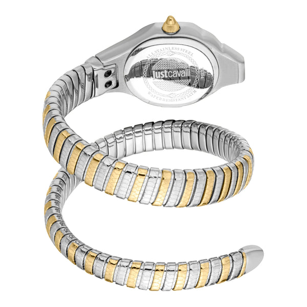 In der Welt der Mode, in der Eleganz auf Kühnheit trifft, entsteht eine Uhr, die das Wesen kühner Raffinesse einfängt. Gefertigt im Herzen der Schweizer Uhrmacherkunst, ist diese Just Cavalli Watch aus der Signature Snake Kollektion ein Zeugnis für den wagemutigen Geist und das raffinierte Design der Marke. Das runde Gehäuse, getaucht in einen luxuriösen Gelbgoldton, strahlt eine Aura von Opulenz aus und ergänzt perfekt den zarten Durchmesser von 22 mm, der das Handgelenk mit Subtilität und Anmut schmückt. Das champagnerfarbene Zifferblatt, das an einen goldenen Sonnenuntergang erinnert, verleiht einen Hauch von Glamour, während die minimalistische Zwei-Zeiger-Anzeige dafür sorgt, dass die Zeit mit Präzision und Stil angezeigt wird. Das Edelstahlarmband, ebenfalls in Gelbgold, umschließt das Handgelenk wie ein schimmerndes Armband und bietet sowohl Haltbarkeit als auch Eleganz. Wasserfest und mit einem Mineralglas ausgestattet, ist diese Uhr dafür konzipiert, den Abenteuern einer modernen Frau standzuhalten, die das Leben mit Selbstvertrauen annimmt. Die Pull & Push Krone fügt einen Hauch von Praktikabilität hinzu und macht es einfach, die Zeit bei Bedarf einzustellen. Mit seinem Quarzwerk verspricht diese Uhr Zuverlässigkeit und Genauigkeit und stellt sicher, dass jeder Moment mit Finesse festgehalten wird. Eine wahre Verkörperung des furchtlosen Charakters von Just Cavalli, ist diese Uhr nicht nur ein Accessoire, sondern ein Statement von Individualität und Stil, perfekt für diejenigen, die es wagen, in einer Welt der Konformität aufzufallen.