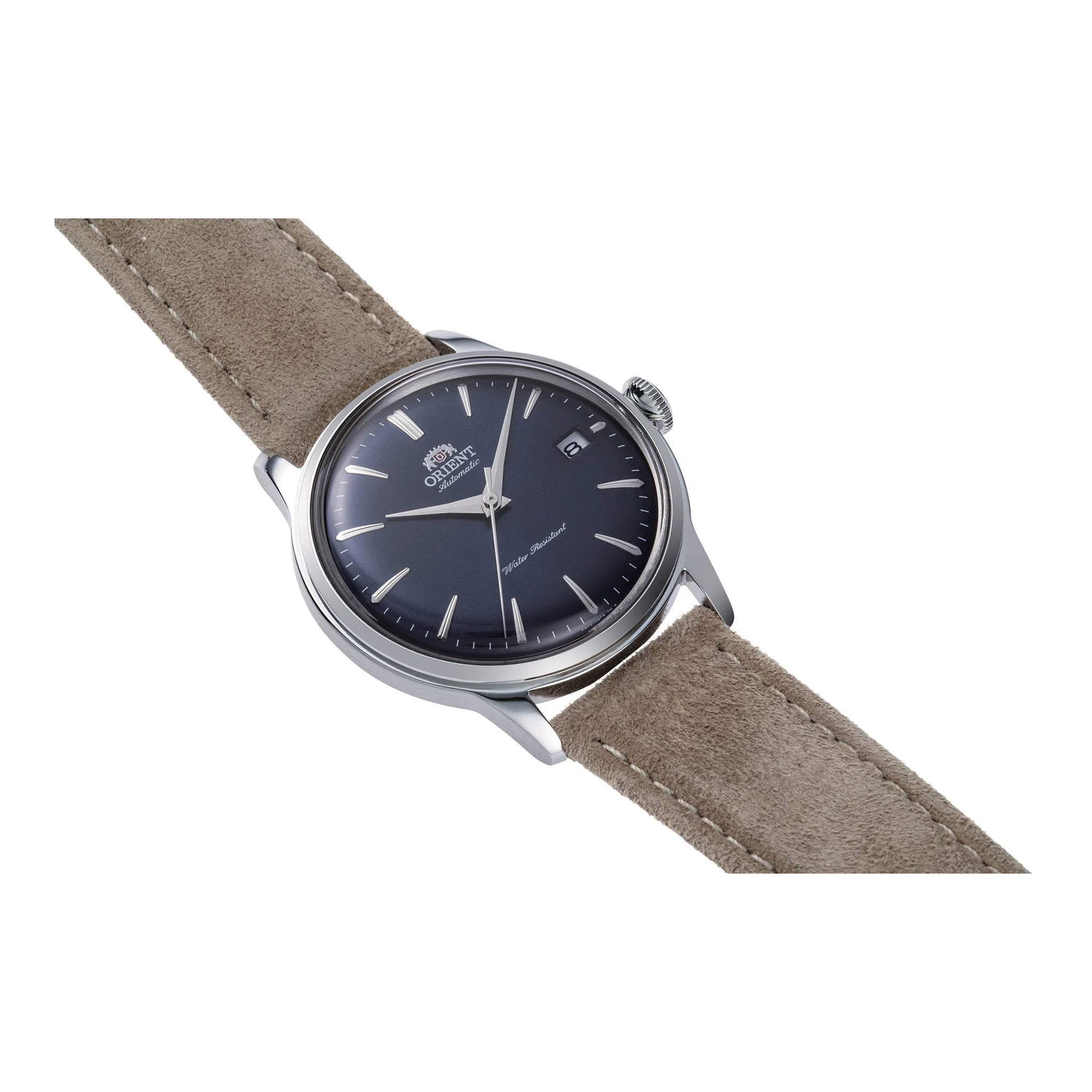 Im Bereich zeitloser Eleganz erscheint die ORIENT AC0M Bambino 38mm als ein Leuchtturm klassischer Raffinesse. Präzise gefertigt, verkörpert diese Uhr das Wesen eines verfeinerten Designs und verbindet nahtlos Tradition mit Moderne. Ihr rundes Gehäuse, getaucht in einen silbergrauen Farbton, strahlt eine subtile, aber auffällige Präsenz am Handgelenk aus und ergänzt perfekt das nachtblau Zifferblatt, das die Tiefe eines sternenklaren Himmels einfängt. Das Mineralglas bietet einen klaren Blick auf die filigranen Details des Zifferblatts, wo drei Zeiger anmutig über die Fläche gleiten und den Zeitverlauf mit mechanischer Präzision markieren. Der transparente Boden offenbart das Herz der Uhr, das Kaliber F6724, ein Zeugnis der Uhrmacherkunst mit seinen 22 Steinen, die einen reibungslosen Betrieb gewährleisten. Das hellbraune Lederarmband, gesichert mit einer Dornschließe, verleiht einen Hauch von Wärme und Komfort und macht sie zu einem idealen Begleiter für jeden Anlass. Wasserresistent und mit einer Pull & Push-Krone ausgestattet, ist dieses Zeitmessgerät ebenso praktisch wie schön. Das automatische Uhrwerk, mit der Option zum Handaufzug, sorgt dafür, dass die Uhr mit einer täglichen Genauigkeit von +25/-15 Sekunden weiterläuft. Die Datumsanzeige fügt eine Funktionsebene hinzu und macht sie zu einer perfekten Kombination aus Stil und Nutzen. Diese ORIENT Classic Uhr ist nicht nur ein Zeitmesser, sondern ein Statement dauerhafter Eleganz und eine Hommage an die Kunst der Uhrmacherei.