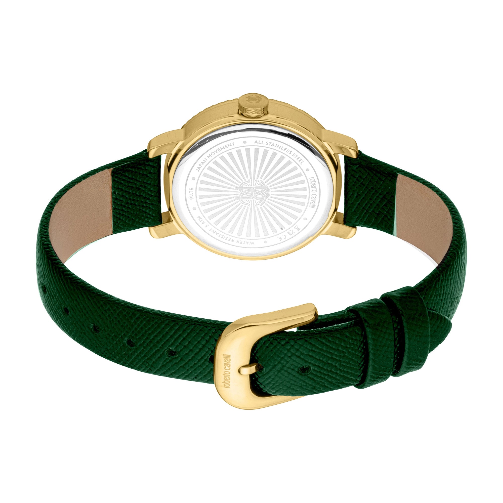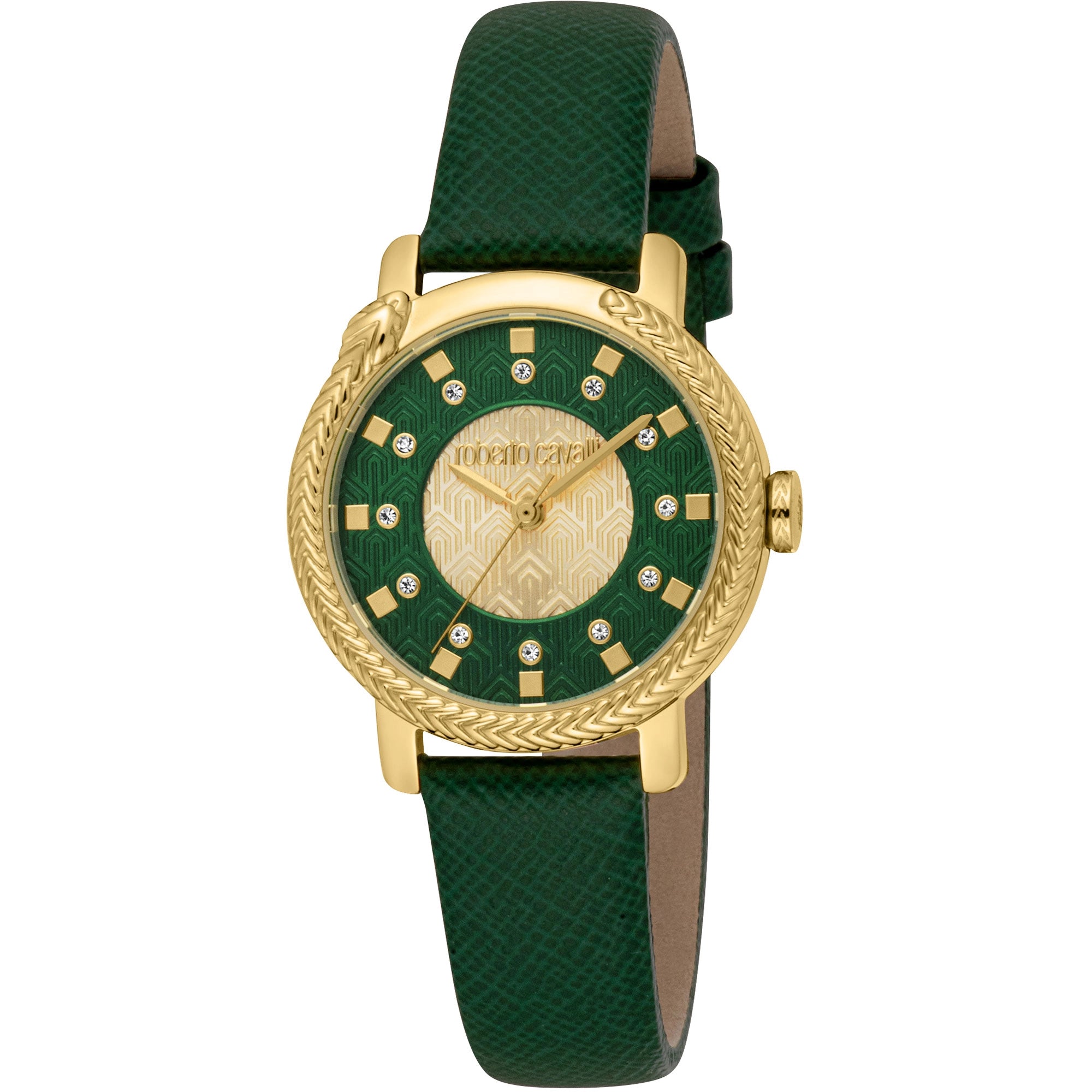 Discover the timeless elegance of Roberto Cavalli. Shop this stunning yellow gold and bottle green watch now at Watchello.com and find your perfect women's watch today!