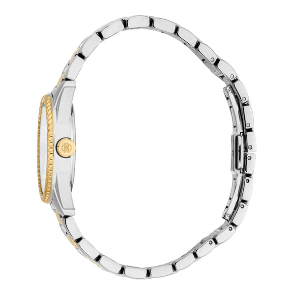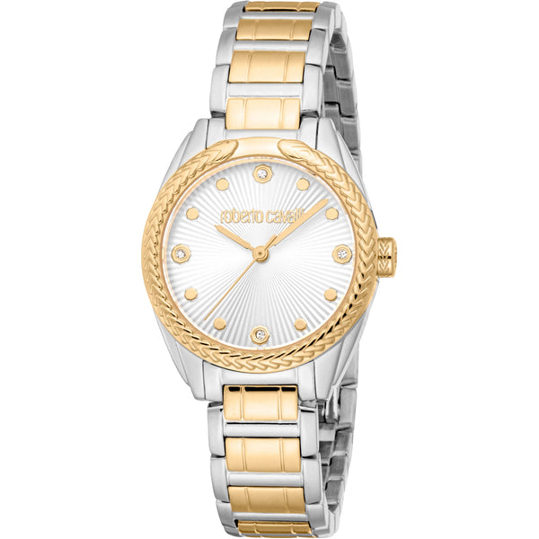 In der Welt der Mode, in der Eleganz auf Innovation trifft, entsteht eine Uhr, die das Wesen von Raffinesse und Stil verkörpert. Gefertigt im Herzen der Schweizer Uhrmacherkunst, ist diese Roberto Cavalli Lady Uhr ein Zeugnis für verfeinertes Design und zeitlose Anziehungskraft. Ihr rundes Gehäuse, getaucht in ein glänzendes Silbergrau, fängt das Licht bei jeder Bewegung ein und erzeugt einen Tanz von Reflexionen, der sowohl fesselnd als auch subtil ist. Der Durchmesser von 30 mm findet die perfekte Balance zwischen Zartheit und Präsenz und macht sie zu einer idealen Begleiterin für die moderne Frau, die sowohl Anmut als auch Funktionalität schätzt. Mit einer Wasserdichtigkeit von bis zu 50 Metern ist diese Uhr so vielseitig wie schön und bereit, Sie vom Konferenzraum bis zum Ballsaal zu begleiten. Das Mineralglas schützt das Zifferblatt und sorgt für Klarheit und Haltbarkeit, während die Pull & Push-Krone eine einfache Einstellung ermöglicht. Das Edelstahlarmband, ebenfalls in Silbergrau, schmiegt sich mit einem Gefühl von Kontinuität und Eleganz um das Handgelenk und wird durch eine Butterfly-Faltschließe mit Druckknopf für zusätzlichen Komfort gesichert. Das Zifferblatt, eine harmonische Erweiterung des Gehäuses, spiegelt das Silbergrau-Thema wider und schafft eine nahtlose Ästhetik, die sowohl zeitgenössisch als auch klassisch ist. Angetrieben von einem präzisen Quarzwerk verfügt diese Uhr über eine 3-Zeiger-Anzeige, angetrieben vom zuverlässigen GL32-Kaliber, das sicherstellt, dass die Zeit immer auf Ihrer Seite ist. Diese Roberto Cavalli Lady Uhr ist nicht nur ein Accessoire, sondern ein Stil-Statement, ein Spiegelbild des tadellosen Geschmacks der Trägerin und eine Feier der Kunst der Uhrmacherei.