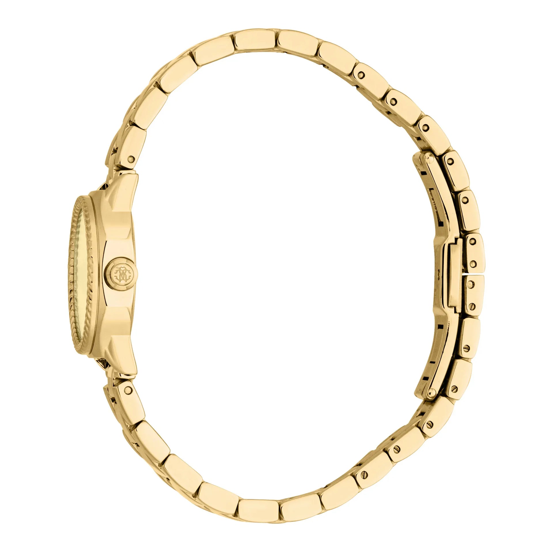 In der Welt der Mode, in der Eleganz auf Innovation trifft, entsteht eine Uhr, die das Wesen von Raffinesse und Stil einfängt. Gefertigt im Herzen der Schweizer Uhrmacherkunst, ist diese Roberto Cavalli Lady Uhr ein Zeugnis für verfeinertes Design und exquisite Handwerkskunst. Ihr achteckiges Gehäuse, getaucht in den warmen Glanz von Gelbgold, strahlt eine zeitlose Anziehungskraft aus, die sowohl kühn als auch anmutig ist. Mit einem Gehäusedurchmesser von 24 mm sitzt sie zart am Handgelenk, ein perfekter Begleiter für die moderne Frau, die die schönen Dinge des Lebens schätzt. Das champagnerfarbene Zifferblatt, ein subtiler Hinweis auf Luxus, ist mit drei Zeigern versehen, die von einem präzisen Quarzwerk angetrieben werden und sicherstellen, dass die Zeit immer auf Ihrer Seite ist. Das Mineralglas bietet eine klare Sicht auf das Zifferblatt, während die Pull & Push-Krone diesem eleganten Stück einen Hauch von Praktikabilität verleiht. Das Edelstahlarmband, ebenfalls in Gelbgold, umschließt das Handgelenk mit einer Butterfly-Faltschließe mit Druckknopf, die sowohl Sicherheit als auch Tragekomfort bietet. Bis zu 50 Meter wasserdicht, ist diese Uhr so vielseitig wie schön und bereit, Sie vom Konferenzraum bis zu einem Abend in der Stadt zu begleiten. Mit ihrem exquisiten Design und ihrer tadellosen Funktionalität ist diese Roberto Cavalli Lady Uhr nicht nur eine Uhr, sondern ein Statement von Stil und Raffinesse, ein Spiegelbild der Frau, die sie trägt.