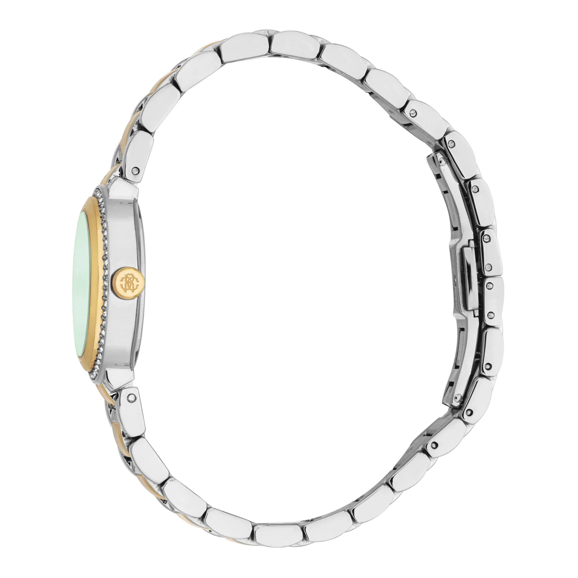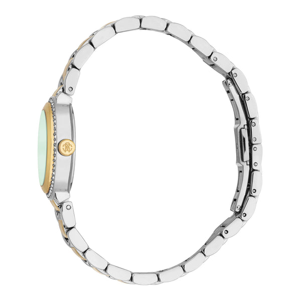 In der Welt der Mode, in der Eleganz auf Innovation trifft, entsteht eine Uhr, die das Wesen von Raffinesse und Stil einfängt. Gefertigt im Herzen der Schweizer Uhrmacherkunst, ist diese Roberto Cavalli Lady Uhr ein Zeugnis für verfeinertes Design und exquisite Handwerkskunst. Ihr rundes Gehäuse, getaucht in einen eleganten silbergrauen Farbton, umrahmt ein faszinierendes flaschengrünes Zifferblatt, das ein Gefühl von Tiefe und Geheimnis hervorruft. Das Zifferblatt, geschmückt mit drei Zeigern, die von einem präzisen Quarzwerk angetrieben werden, ist eine Leinwand zeitloser Schönheit. Eingefasst in Mineralglas bietet es ein Fenster in eine Welt, in der Zeit sowohl Maß als auch Muse ist. Das Edelstahlarmband, strahlend in Gelbgold, schmiegt sich mit einem Hauch von Opulenz um das Handgelenk und wird durch eine Butterfly-Faltschließe mit Druckknopf für Leichtigkeit und Eleganz gesichert. Mit einer Wasserdichtigkeit von bis zu 50 Metern ist diese Uhr nicht nur ein Accessoire, sondern ein Begleiter für die Abenteuer des Lebens. Die Pull & Push Krone verleiht ihrem luxuriösen Design einen Hauch von Praktikabilität. Mit nur 70 Gramm Gewicht ist sie ein leichtes Wunder, das die moderne Frau anspricht, die sowohl Mode als auch Funktion schätzt. Diese Roberto Cavalli Lady Uhr ist mehr als eine Uhr, sie ist ein Statement von Anmut und eine Feier der Kunst der Uhrmacherei.