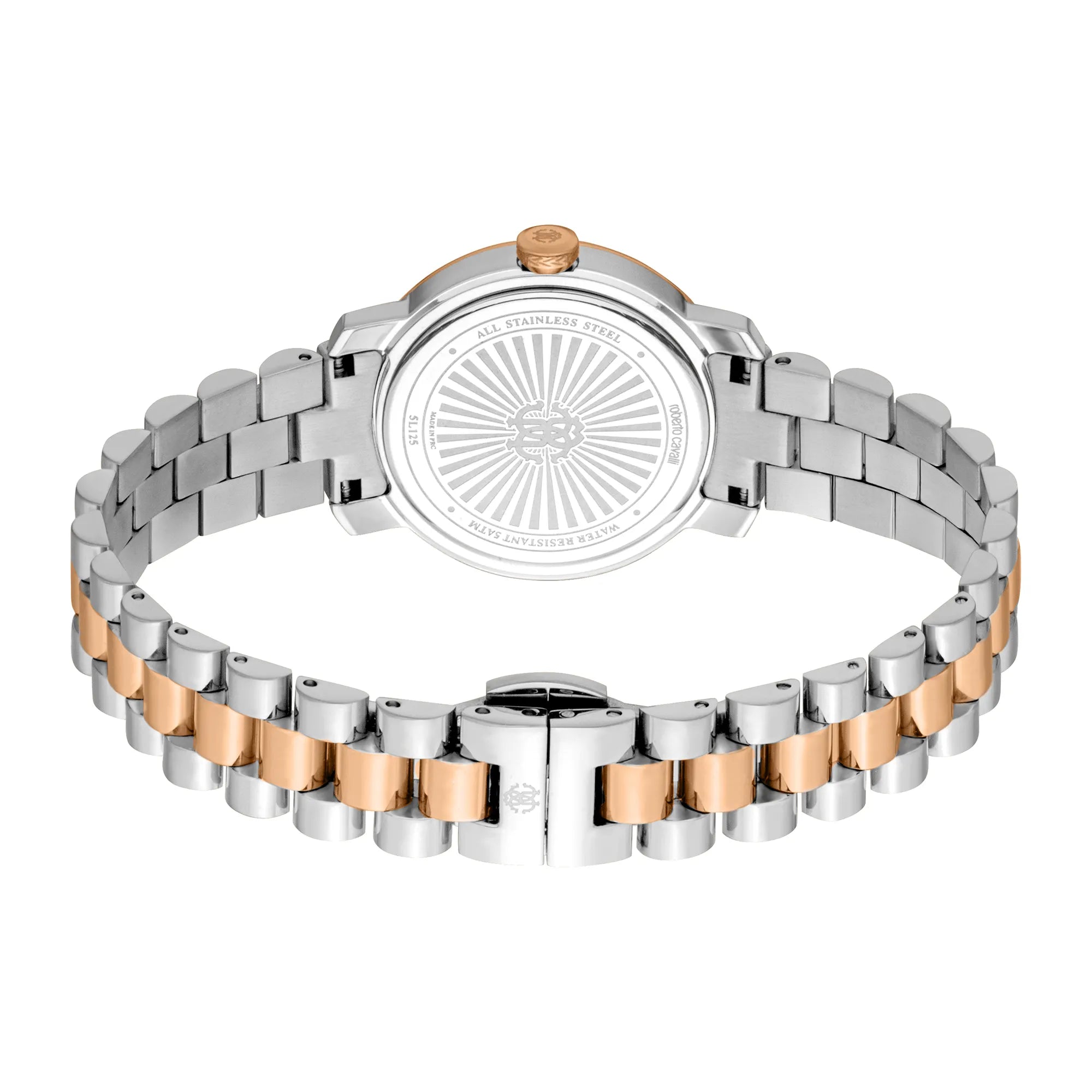 In der Welt der Mode, in der Eleganz auf Innovation trifft, entsteht eine Uhr, die das Wesen von Raffinesse und Stil verkörpert. Gefertigt im Herzen der Schweizer Uhrmacherkunst, ist diese Roberto Cavalli Lady Uhr ein Zeugnis für verfeinertes Design und zeitlose Anziehungskraft. Ihr rundes Gehäuse, getaucht in ein glänzendes Silbergrau, fängt das Licht bei jeder Bewegung ein und schafft einen Tanz der Reflexionen, der sowohl fesselnd als auch subtil ist. Der Durchmesser von 30 mm findet die perfekte Balance zwischen Zartheit und Präsenz und macht sie zu einer idealen Begleiterin für die moderne Frau, die sowohl Anmut als auch Funktionalität schätzt. Bis zu 50 Meter wasserdicht, ist diese Uhr so vielseitig wie schön und bereit, Sie vom Sitzungssaal bis zum Ballsaal zu begleiten. Das Mineralglas schützt ein eisenfarbenes Zifferblatt, auf dem drei Zeiger mühelos gleiten, angetrieben von der Präzision eines Quarzwerks mit GL32 Kaliber. Die Pull & Push Krone bietet eine einfache Einstellung und sorgt dafür, dass die Zeit immer auf Ihrer Seite ist. Das Handgelenk umschließt ein Edelstahlarmband, dessen silbergrauer Farbton das Gehäuse widerspiegelt, gesichert mit einer Butterfly-Faltschließe mit Druckknopf für Sicherheit und Tragekomfort. Diese Uhr ist nicht nur ein Accessoire, sondern ein Statement für zukunftsorientiertes Denken in der Mode, ein Stück, das das Herz derjenigen anspricht, die es wagen, Tradition mit Moderne zu verbinden.