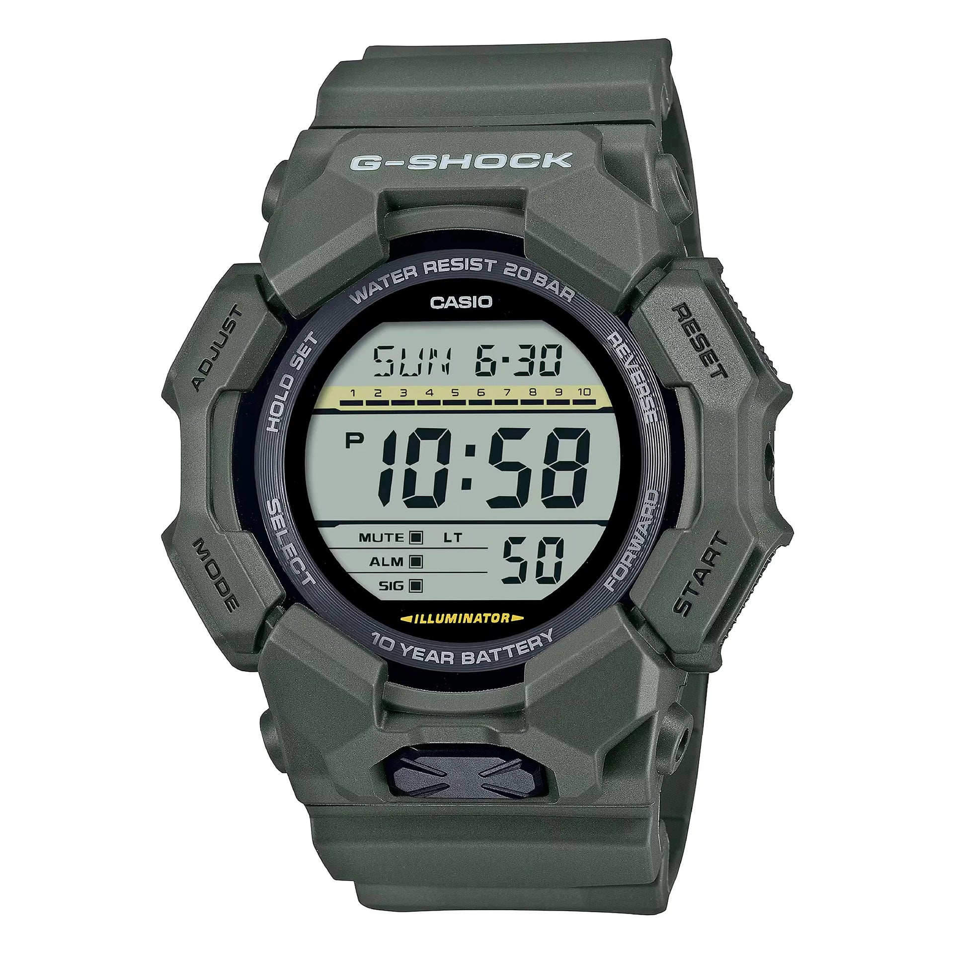 Le CASIO G-Shock vert olive est un hommage au style intemporel et à l'aventure. Son boîtier rond de 52 mm et son bracelet en résine assorti dégagent une élégance robuste, tandis que le cadran noir offre une touche classique. Avec la résistance à l'eau de 200m du Diver, il est prêt pour toute expédition.