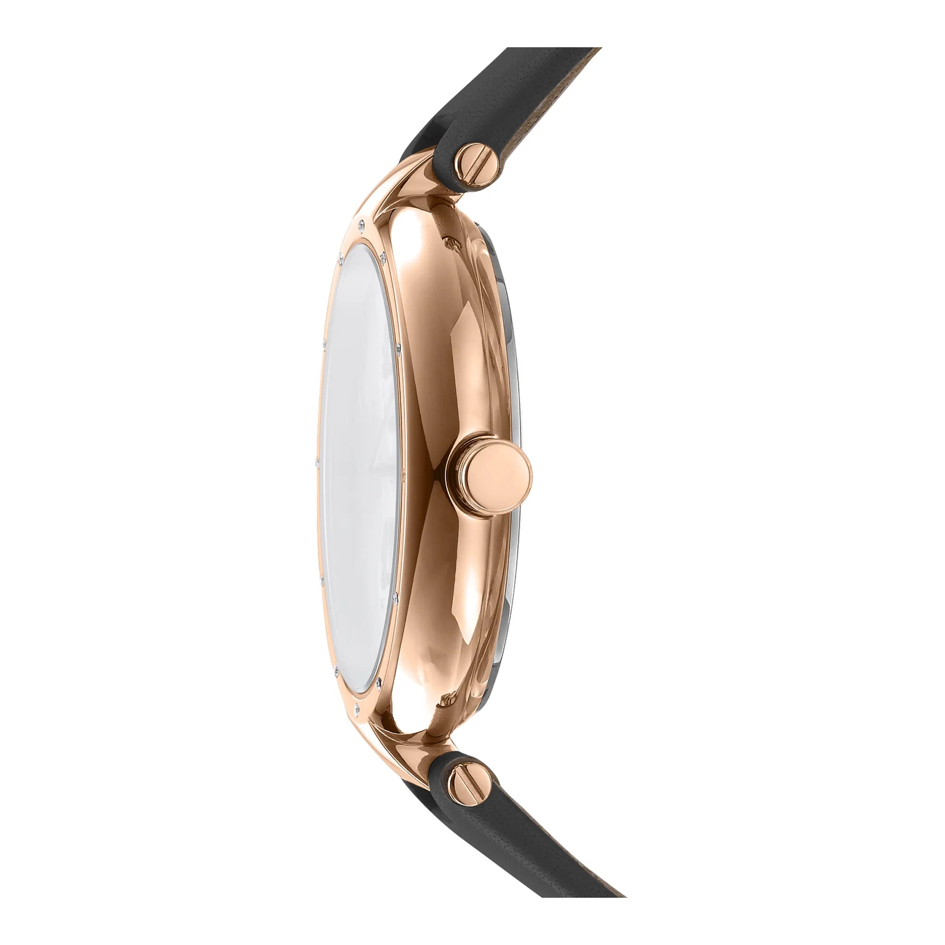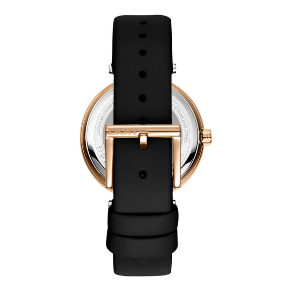 Au cœur animé de la ville, où la mode rencontre la fonctionnalité, la montre DKNY Downtown Multi émerge comme un phare de style et de sophistication. Conçue dans une silhouette ronde, son boîtier en or rose dégage une lueur chaude et accueillante, complétant parfaitement l'élégance urbaine de son design. Avec un diamètre de 38 mm, ce garde-temps est une déclaration de goût raffiné, idéal pour la femme moderne qui navigue sa journée avec grâce et confiance. Le cadran gris argenté, rappelant une silhouette urbaine élégante, est une toile de fonctionnalité, présentant un affichage multifonction qui intègre parfaitement les indicateurs de jour et de temps sur 24 heures. Sous son verre minéral, la montre abrite un mouvement à quartz précis, alimenté par le fiable Caliber 6P23, garantissant que le temps est toujours de votre côté. Le bracelet en cuir noir, sécurisé par une boucle ardillon, ajoute une touche de sophistication classique, tandis que la résistance à l'eau jusqu'à 50 mètres offre une tranquillité d'esprit pour ces moments inattendus. Cette montre DKNY n'est pas seulement un accessoire, c'est un témoignage de l'esprit dynamique de la ville, où chaque seconde compte et chaque instant est une opportunité de briller.