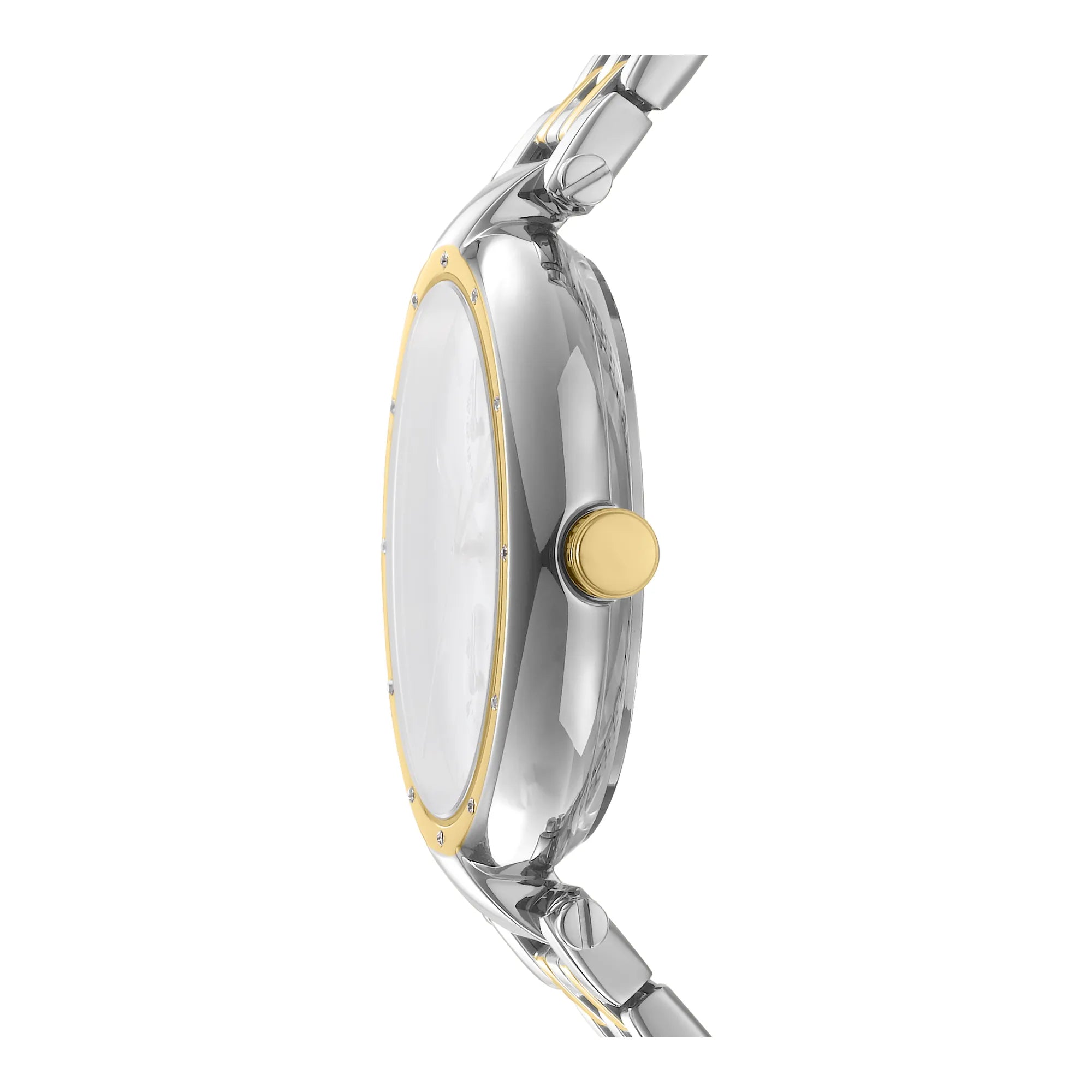 Au cœur animé de la ville, où la mode rencontre la fonctionnalité, la montre DKNY DK1L066 Downtown Multi émerge comme un symbole d'élégance urbaine. Conçue avec précision, cette montre est destinée à la femme moderne qui navigue sa journée avec grâce et style. Le boîtier rond, baigné d'un gris argenté sophistiqué, complète parfaitement le bracelet en acier inoxydable, créant un flux harmonieux d'attrait métallique. Avec un diamètre de boîtier de 38 mm, elle trouve l'équilibre parfait entre audace et subtilité, en faisant un accessoire idéal pour toute occasion. Le verre minéral protège le cadran, qui reflète la teinte gris argenté du boîtier, offrant une toile monochromatique qui dégage un chic contemporain. Cette montre ne se limite pas à l'esthétique, elle dispose d'un affichage multifonction alimenté par un mouvement à quartz fiable, garantissant précision et fiabilité. L'inclusion d'un calendrier journalier et d'une fonction heure 24 ajoute de la praticité à son design à la mode. Résistante à l'eau jusqu'à 50 mètres, elle est prête à vous accompagner dans les aventures de la vie, que vous naviguiez dans la jungle urbaine ou profitiez d'une escapade sereine. La boucle déployante papillon avec fermeture à bouton-poussoir assure un ajustement sécurisé, tandis que la couronne à tirer et pousser offre une facilité de réglage. La montre DKNY Downtown Multi est plus qu'un simple garde-temps, c'est une déclaration de design raffiné et de sophistication moderne, conçue pour suivre le rythme dynamique de votre vie.