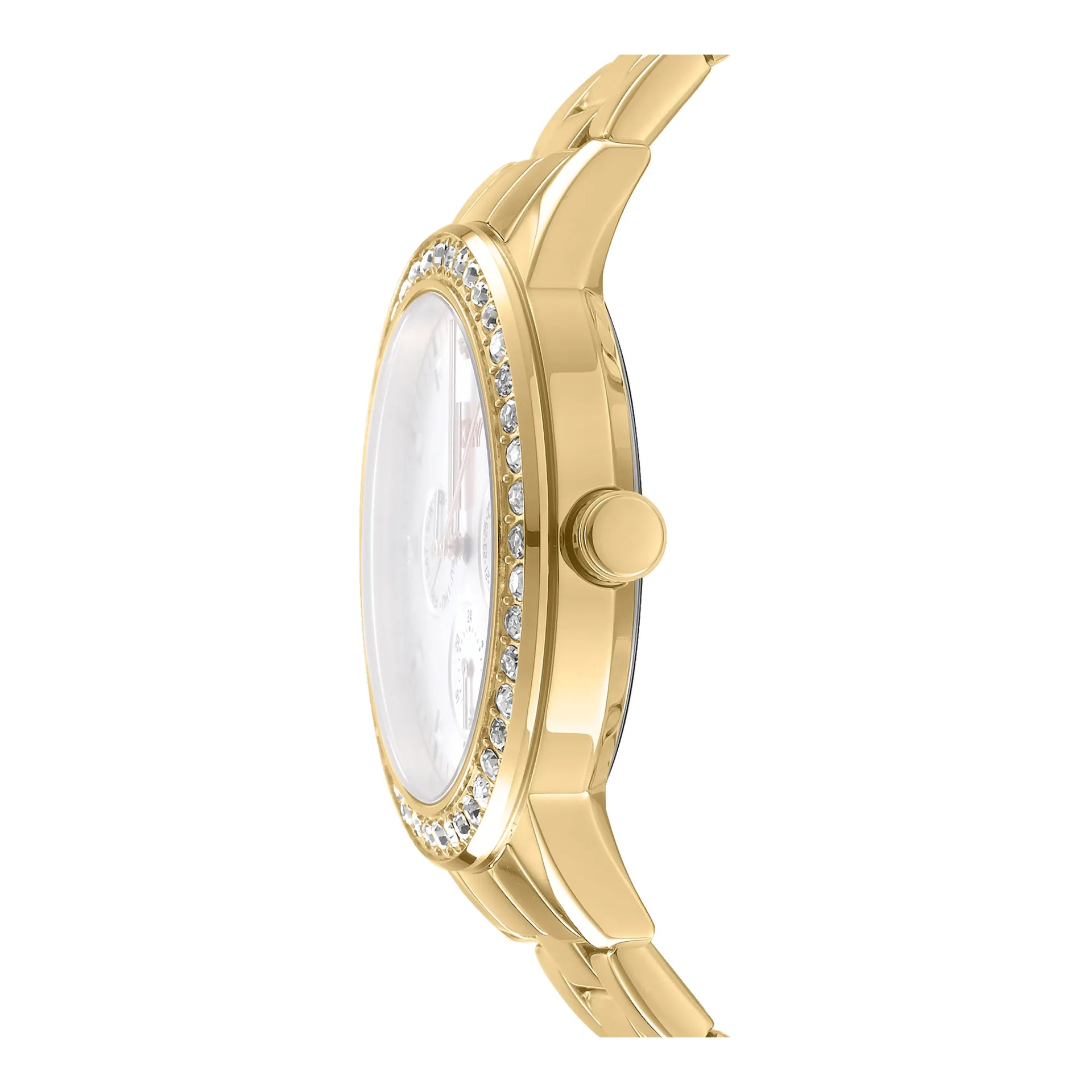 Au cœur animé de New York, où la mode rencontre la fonctionnalité, émerge une montre qui incarne l'esprit de la femme moderne. La montre DKNY DK1L055 Parsons Multi Glitz est un témoignage d'élégance et de sophistication, conçue pour celles qui osent se démarquer. Son boîtier rond, baigné d'une teinte luxueuse d'or jaune, capture l'essence du glamour intemporel, tandis que son diamètre de 40 mm assure une présence audacieuse au poignet. Fabriquée avec précision, cette montre offre une résistance à l'eau jusqu'à 50 mètres, en faisant une compagne fiable tant pour les aventures urbaines que pour les escapades sereines. Le cristal minéral protège un cadran gris argenté qui scintille d'un charme discret, abritant un affichage multifonction qui vous maintient en phase avec le rythme de la ville. Le bracelet en acier inoxydable, également en or jaune, s'enroule autour du poignet avec une boucle déployante papillon, garantissant à la fois sécurité et style. Animée par un mouvement à quartz avec un calibre 6P29, cette montre offre des fonctions jour et date, alliant parfaitement praticité et panache. La DKNY Parsons Multi Glitz est plus qu'une simple montre, c'est une déclaration de pensée avant-gardiste en matière de mode, un reflet d'un style de vie qui embrasse à la fois le classique et le contemporain.
