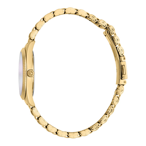 Dans le monde de la mode, où l'élégance rencontre l'audace, émerge une montre qui capture l'essence de la sophistication et du style. Conçue au cœur du design italien, cette Just Cavalli Watch de la collection JC1L267 Pacentro est un témoignage de l'engagement de la marque envers le luxe et l'innovation. Le boîtier rond, baigné d'une teinte luxueuse en or jaune, dégage un sentiment d'attrait intemporel, complétant parfaitement le design raffiné de la montre. Avec un diamètre de boîtier de 30 mm, elle repose gracieusement sur le poignet, en faisant un accessoire idéal pour la femme moderne qui valorise à la fois la mode et la fonctionnalité. Le bracelet en acier inoxydable, également dans une teinte or jaune assortie, ajoute une touche d'opulence, tandis que la boucle déployante papillon avec bouton-poussoir assure un ajustement sécurisé et confortable. Le cadran blanc antique, une toile d'élégance discrète, est orné de trois aiguilles animées par un mouvement à quartz précis, offrant un mélange harmonieux de style et de précision. Résistante à l'eau jusqu'à 50 mètres, cette montre est aussi polyvalente que belle, prête à vous accompagner de la salle de réunion à une soirée. Le cristal minéral ajoute une couche de durabilité, protégeant la montre des rigueurs de l'usure quotidienne. Cette Just Cavalli Watch n'est pas seulement une montre, c'est une déclaration d'élégance audacieuse, un reflet du caractère unique du porteur et de son flair pour la mode.