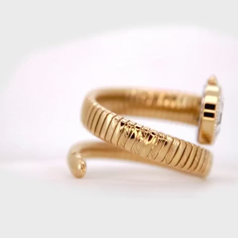 Crafted with a sleek yellow gold IP plated stainless steel oval case, measuring an elegant 22mm, this watch is adorned with 60 sparkling zircons, adding a touch of glamour to its unique snake-inspired silhouette. The vibrant turquoise dial creates a striking contrast against the warm yellow gold, ensuring your wrist makes a statement.