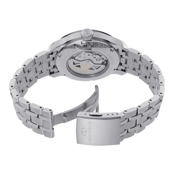 Dans le domaine des montres, où l'élégance rencontre la fonctionnalité quotidienne, cette montre se dresse comme un témoignage de design raffiné et de sophistication discrète. Conçue dans un mélange harmonieux de tons gris argenté, son boîtier rond, mesurant un confiant 41 mm, dégage un charme intemporel qui complète le style décontracté de l'homme moderne. Le cadran gris clair, protégé par un cristal de saphir résistant, offre un arrière-plan serein pour son chronométrage précis, tandis que le dos transparent révèle la danse complexe de ses mécanismes internes. Résistante à l'eau jusqu'à 100 mètres, cette montre est aussi polyvalente que stylée, prête à vous accompagner des réunions en salle de conférence aux aventures du week-end. Le bracelet en acier inoxydable, avec sa teinte gris argenté assortie, s'enroule confortablement autour du poignet, sécurisé par une boucle déployante à poussoir pour la facilité et la sécurité. Avec une longueur de bracelet de 19 cm et une largeur de 20 mm, elle promet un ajustement parfait, alliant confort et élégance. Cette montre n'est pas seulement un accessoire, c'est une déclaration de goût et un reflet d'un style de vie qui valorise à la fois la forme et la fonction, en faisant un compagnon indispensable pour le gentleman exigeant.