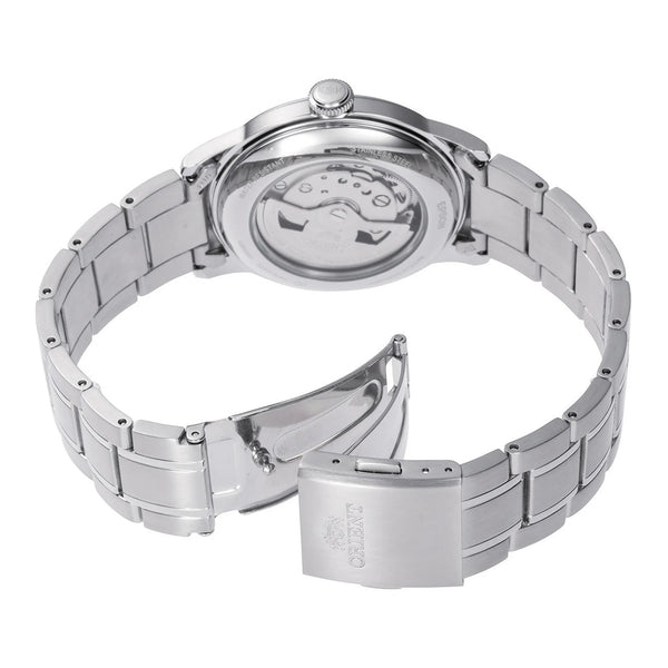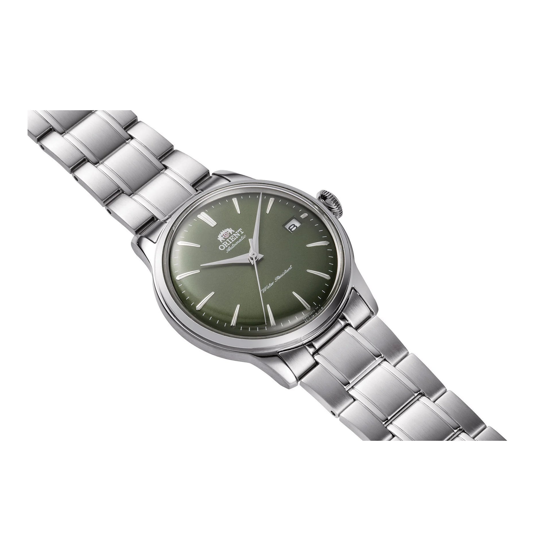 Dans le domaine de l'élégance intemporelle, l'ORIENT AC0M Bambino 38mm émerge comme un phare de sophistication classique. Conçue au cœur de l'excellence horlogère, cette montre incarne le parfait mélange de tradition et de modernité. Son boîtier rond, baigné d'un gris argenté brillant, encadre un cadran éclatant d'un vert herbe vibrant, un clin d'œil à une esthétique pop qui ose se démarquer. Le verre minéral protège le cadran, assurant clarté et durabilité, tandis que le fond transparent offre un aperçu de la danse complexe de son cœur mécanique. Avec un diamètre de boîtier de 38mm, elle repose confortablement sur le poignet, dégageant un design raffiné à la fois discret et saisissant. Le bracelet en acier inoxydable, assorti au boîtier dans son élégance gris argenté, se ferme avec une boucle déployante à fermoir à poussoir et verrou de sécurité pour une assurance supplémentaire. Cette montre ORIENT Classic n'est pas seulement un garde-temps, c'est une déclaration de style et de précision. Le mouvement mécanique, animé par le calibre F6724 avec 22 rubis, promet une précision quotidienne de +25/-15, et la commodité des options à remontage manuel et automatique. Résistante à l'eau et équipée d'un calendrier date, elle s'adresse à l'homme exigeant qui valorise à la fois la forme et la fonction. L'ORIENT AC0M Bambino 38mm est plus qu'une montre, c'est un témoignage de l'attrait durable du design classique, réimaginé pour l'ère moderne.