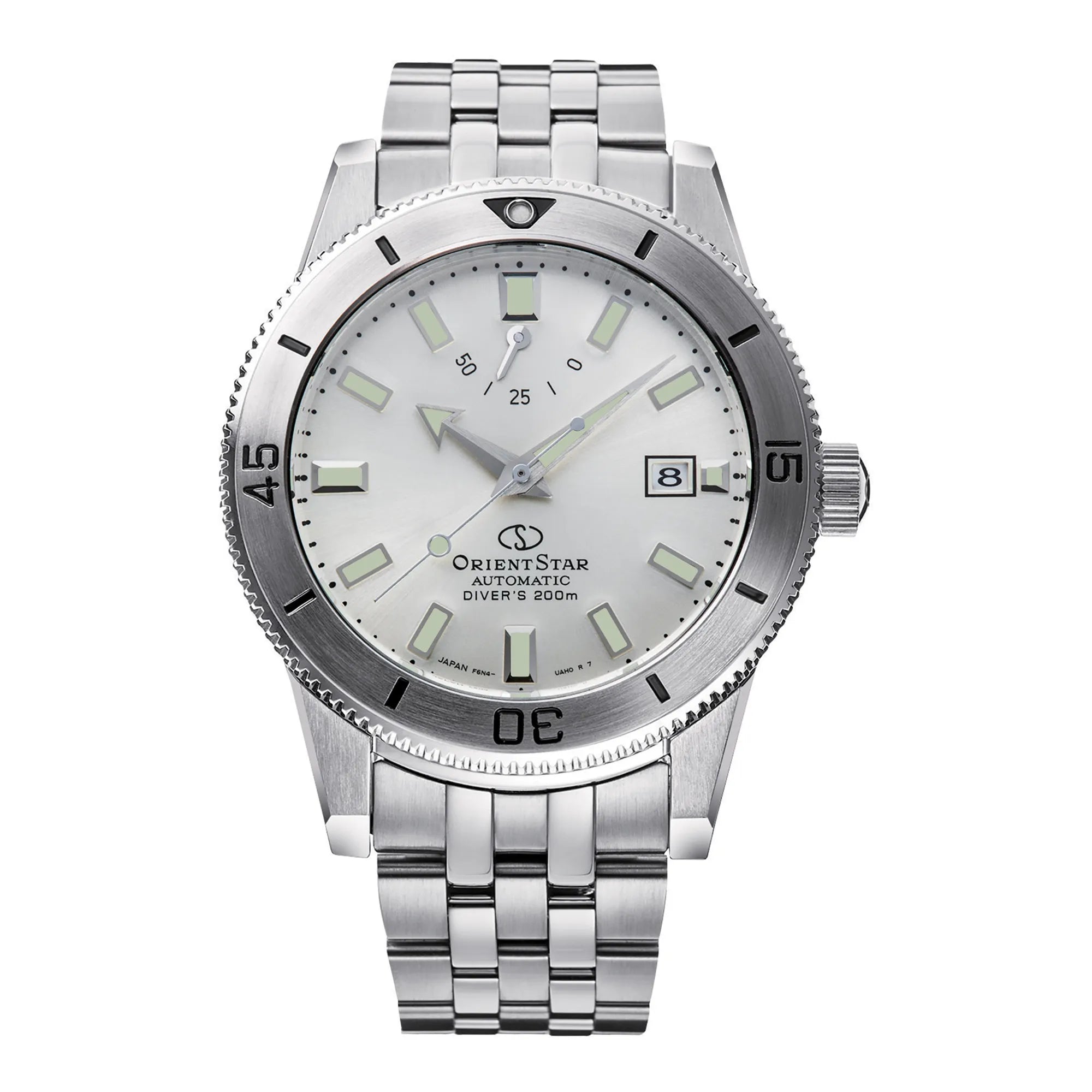 Experience unparalleled reliability with the in-house **ORIENT F6N47 mechanical movement**. Boasting 22 jewels, **automatic** and **hand-winding** capabilities, a **hacking seconds** function, and a practical **power reserve indicator**, it maintains an impressive daily accuracy of +25/-15 seconds. The iconic **Diver 1964** model pays homage to Orient's rich heritage, combining vintage charm with modern engineering.