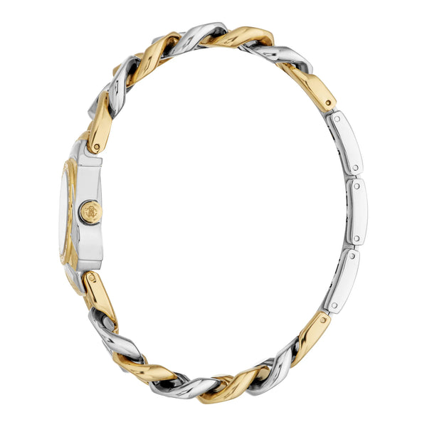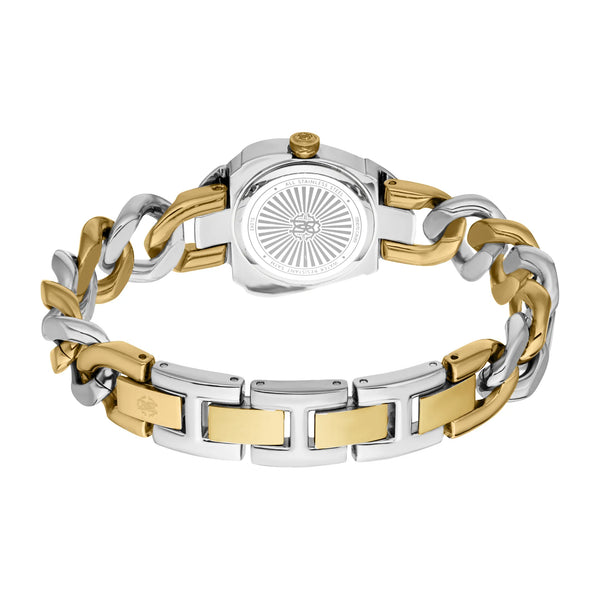 Dans le monde de la haute horlogerie, où l'élégance rencontre l'innovation, émerge une montre qui capture l'essence de la sophistication raffinée. Conçue au cœur de la tradition horlogère suisse, cette montre Roberto Cavalli Lady est un témoignage de l'engagement de la marque envers un design avant-gardiste et un savoir-faire impeccable. La forme irrégulière du boîtier, baignée d'un gris argenté brillant, dégage un sentiment de modernité et de grâce, en faisant un accessoire parfait pour la femme contemporaine. Son bracelet en acier inoxydable, également dans un gris argenté assorti, s'enroule autour du poignet avec une élégance sans faille, sécurisé par une boucle bijou qui témoigne de la nature luxueuse de la montre. Le cadran blanc nacré, discret mais captivant, sert de toile de fond au mouvement quartz à deux aiguilles, animé par le calibre précis GL22. Cette montre n'est pas seulement un instrument de mesure du temps, c'est une déclaration de style, un reflet du goût exigeant de celle qui la porte. Avec une résistance à l'eau allant jusqu'à 50 mètres, elle allie praticité et design exquis, garantissant qu'elle est aussi fonctionnelle que belle. Le verre minéral ajoute une couche de durabilité, protégeant le cadran tout en maintenant clarté et brillance. La couronne à tirer et pousser offre une facilité de réglage, permettant à la porteuse de garder l'heure avec style sans effort. Cette montre Roberto Cavalli Lady est plus qu'un accessoire, c'est l'incarnation de l'élégance, une pièce qui transcende le temps et les tendances, capturant l'esprit de celles qui osent embrasser la mode avec confiance et grâce.
