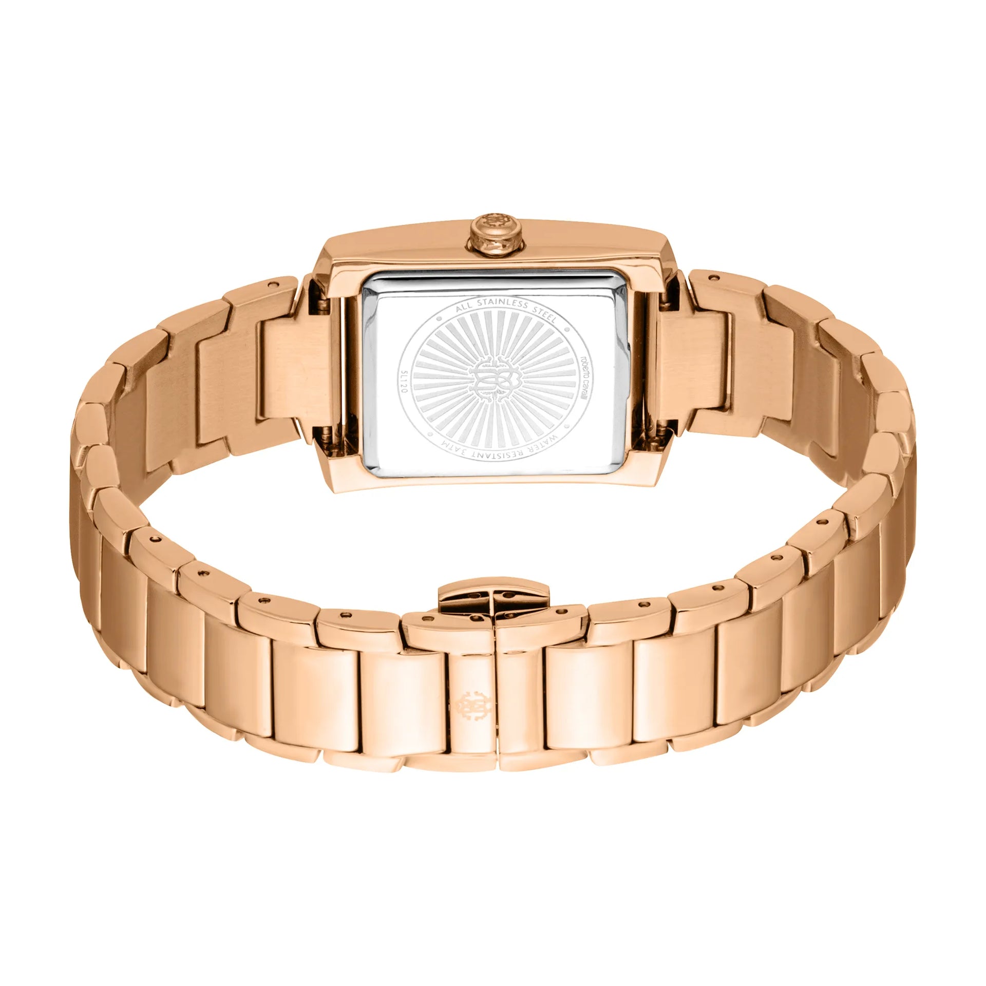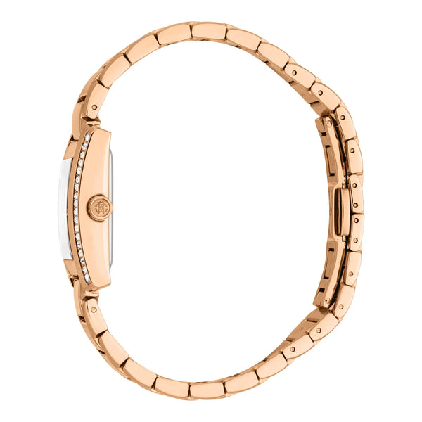 Dans le monde de la mode, où l'élégance rencontre l'innovation, émerge une montre qui capture l'essence de la sophistication et du style. Conçue au cœur de l'horlogerie suisse, cette montre Roberto Cavalli Lady est un témoignage de design raffiné et d'un artisanat exquis. Son boîtier rectangulaire, baigné dans la chaude lueur de l'or rose, dégage un charme intemporel à la fois moderne et classique. Le cadran en cristal minéral offre une vue claire sur le cadran gris argenté, où trois aiguilles dansent gracieusement, animées par la précision d'un mouvement Quartz avec un calibre GL34. La couronne à tirer et pousser ajoute une touche de praticité, garantissant une facilité d'utilisation sans compromettre l'élégance. Enveloppant le poignet d'un bracelet en acier inoxydable, également en or rose, cette montre est sécurisée par une boucle déployante papillon avec bouton-poussoir, offrant à la fois sécurité et style. Résistante à l'eau, elle est conçue pour accompagner la femme moderne à travers chaque facette de sa journée, des rues animées de la ville aux soirées sereines. Cette montre Roberto Cavalli est plus qu'un simple garde-temps, c'est une déclaration de pensée avant-gardiste en matière de mode, une célébration de la féminité et un symbole du goût impeccable de celle qui la porte.