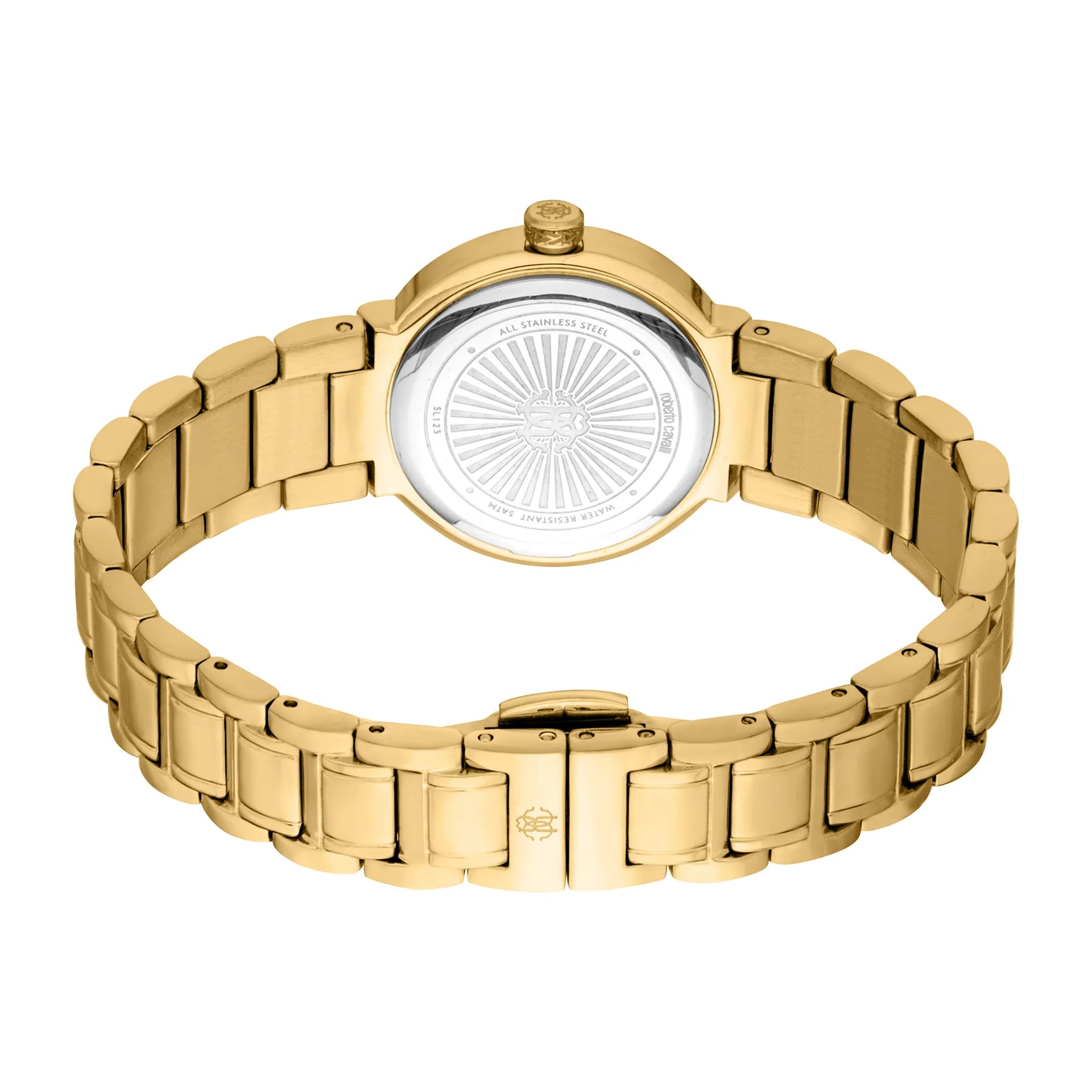 Dans le monde de la haute horlogerie, où l'élégance rencontre la précision, émerge une montre qui incarne l'essence de la sophistication et du style. Fabriquée au cœur de l'horlogerie suisse, cette montre Roberto Cavalli Lady est un témoignage de l'engagement de la marque envers le luxe et la mode. Son boîtier rond, baigné dans la lueur opulente de l'or jaune, capte la lumière à chaque mouvement, créant une danse fascinante de reflets. Le diamètre de 28 mm est un équilibre parfait entre subtilité et présence, en faisant une compagne idéale pour la femme moderne qui valorise à la fois la grâce et la fonctionnalité. Le cadran champagne, rappelant un coucher de soleil doré, ajoute une touche de chaleur et de charme, tandis que l'affichage à trois aiguilles, alimenté par un mouvement quartz précis avec un calibre GL34, garantit que le temps est toujours de votre côté. Le cristal minéral offre une vue claire du cadran, protégé par un design raffiné qui offre une résistance à l'eau jusqu'à 50 mètres. Le bracelet en acier inoxydable, également en or jaune, s'enroule autour du poignet avec un sens de continuité et d'élégance, sécurisé par une boucle déployante papillon avec un bouton-poussoir pour la facilité et le confort. Cette montre n'est pas seulement un accessoire, c'est une déclaration d'avant-garde en matière de mode, une pièce qui parle au cœur de ceux qui osent mêler tradition et modernité. Que ce soit pour assister à un gala ou à un brunch décontracté, cette montre Roberto Cavalli Lady est l'incarnation parfaite de l'élégance intemporelle et du style contemporain, un véritable reflet du goût impeccable et de l'esprit inflexible de celle qui la porte.